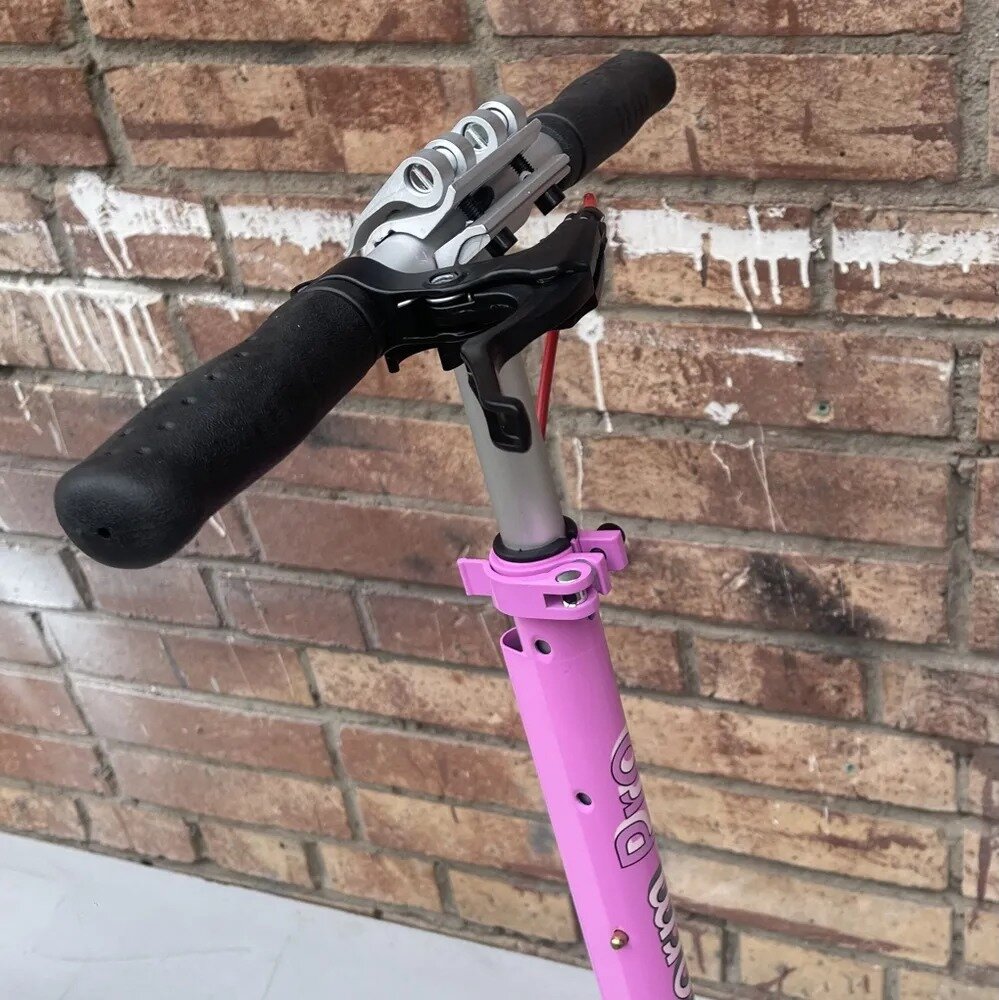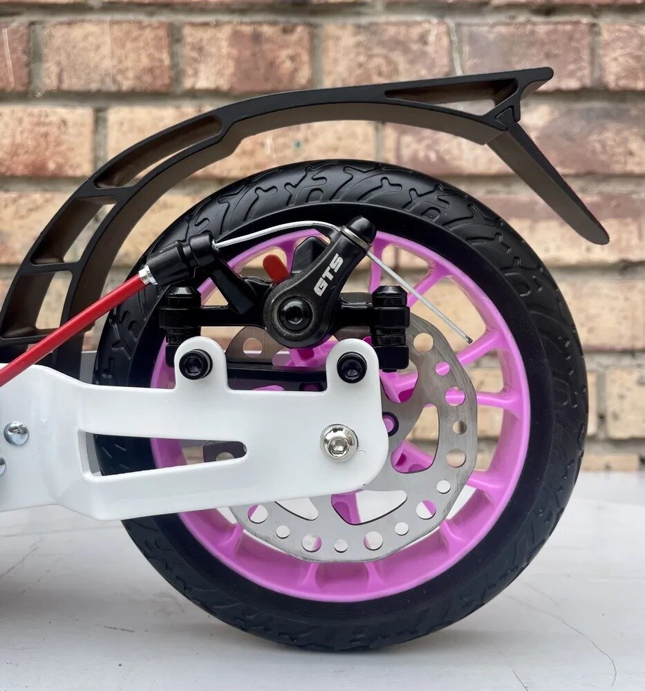 Отзывы на Складной двухколёсный самокат Micar Storm Pro 200 мм с двумя амортизаторами и ручным дисковым тормозом, бело-розовый