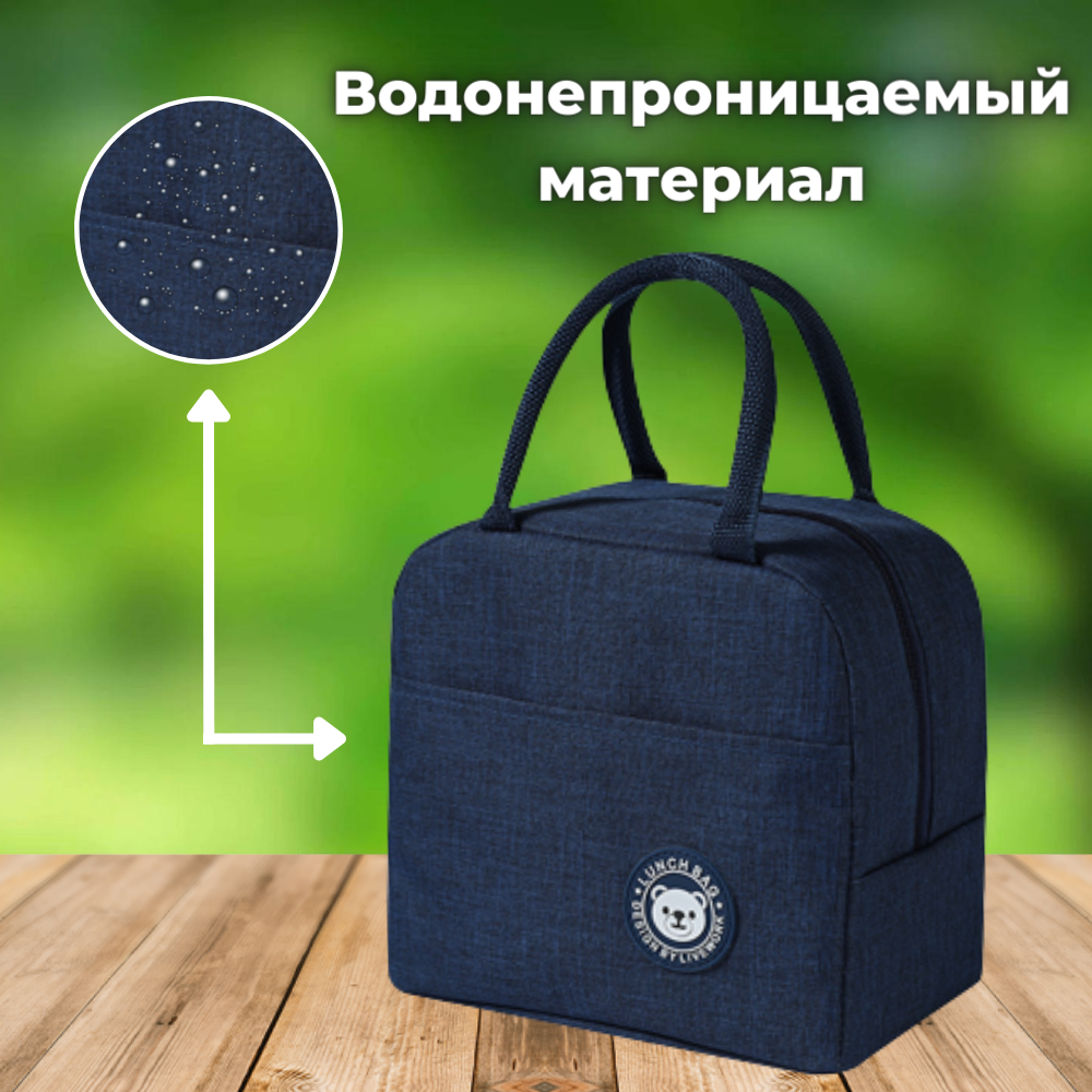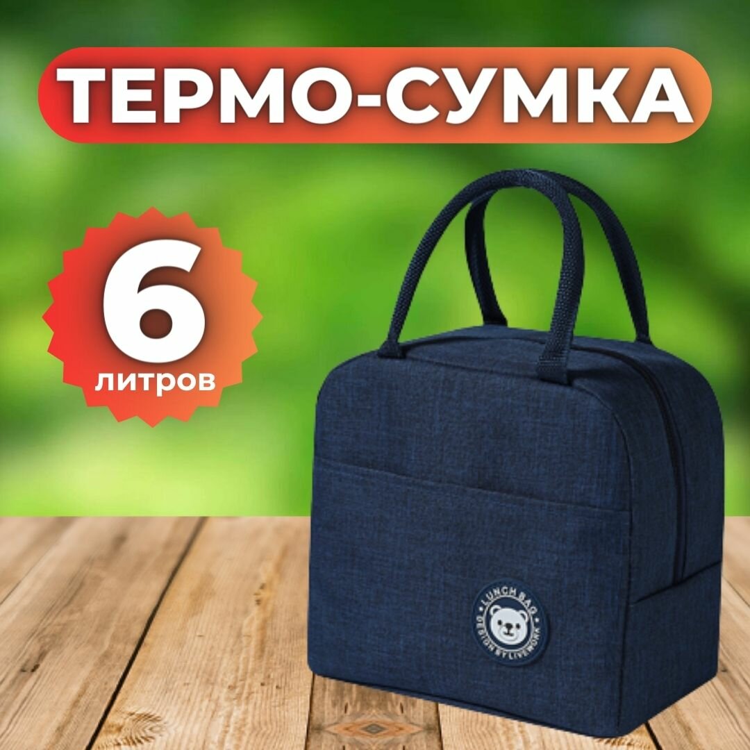 Термосумка для ланч-бокса, объём 6 литров, сумка для обеда и путешествий 23х21х13см, синяя информация: