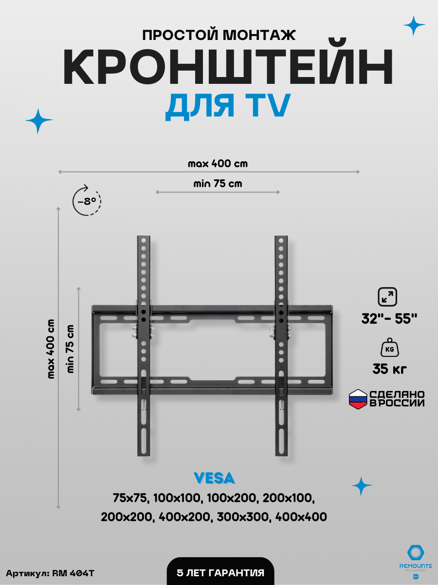 Кронштейн настенный наклонный для ТВ Remounts RM 404T черный 32"-55" дюйма информация: