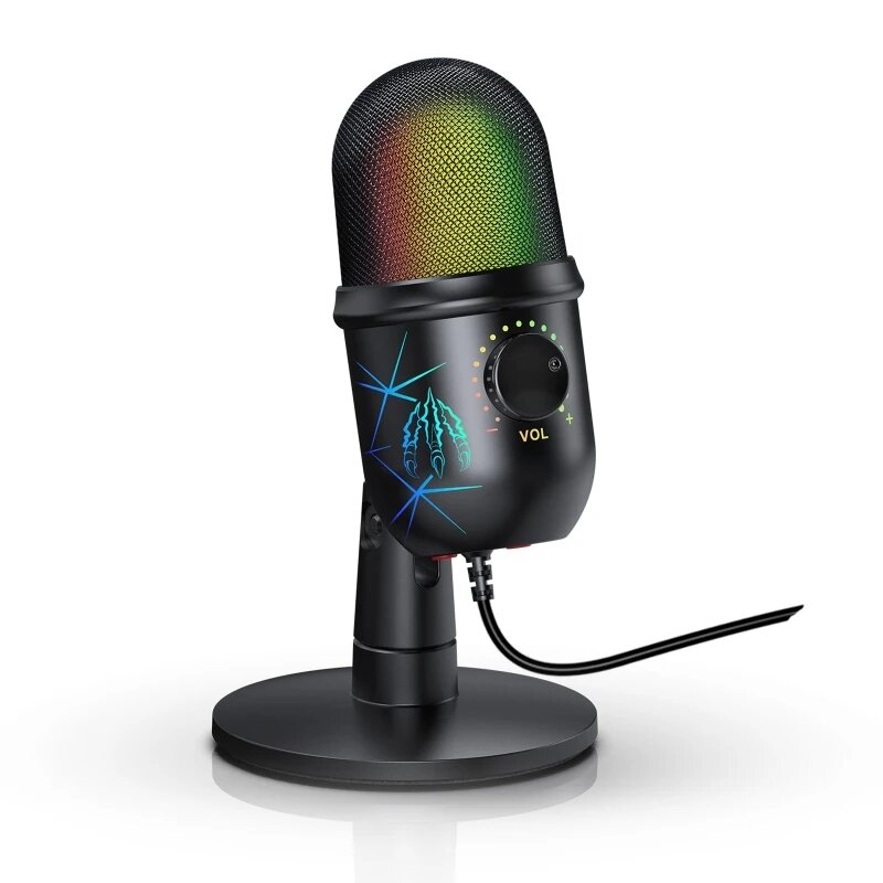 10 цен на Многофункциональный микрофон игровой для стриминга из прочного алюминия с ргб подсветкой и поп фильтром для компьютера