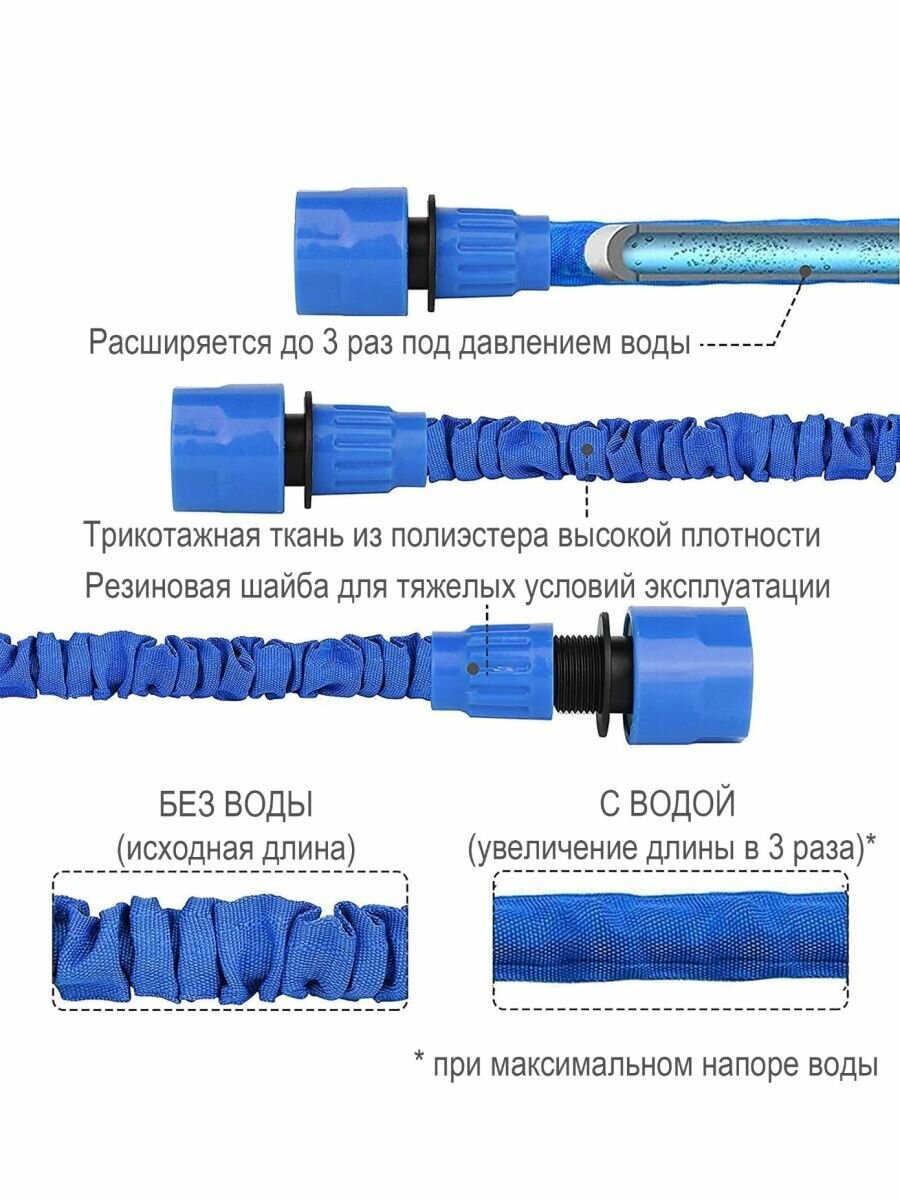 Шланг садовый поливочный растягивающийся 15 метров синий информация: