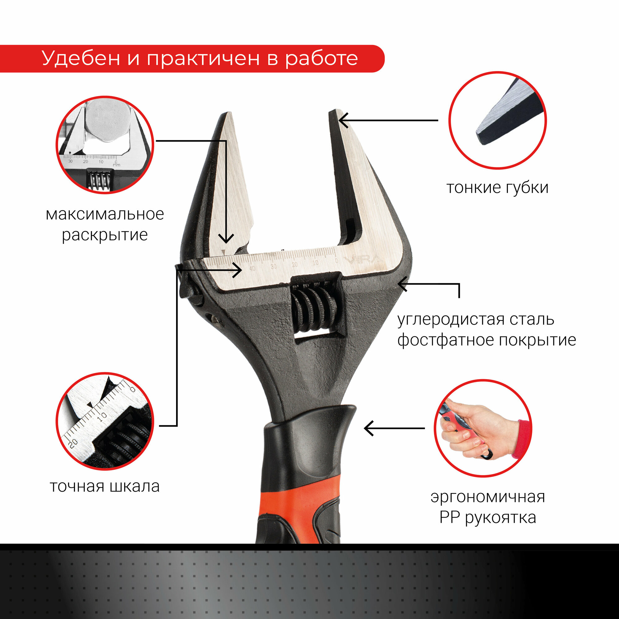 Ключ разводной с тонким губками 250 мм VIRA 1 759 ₽