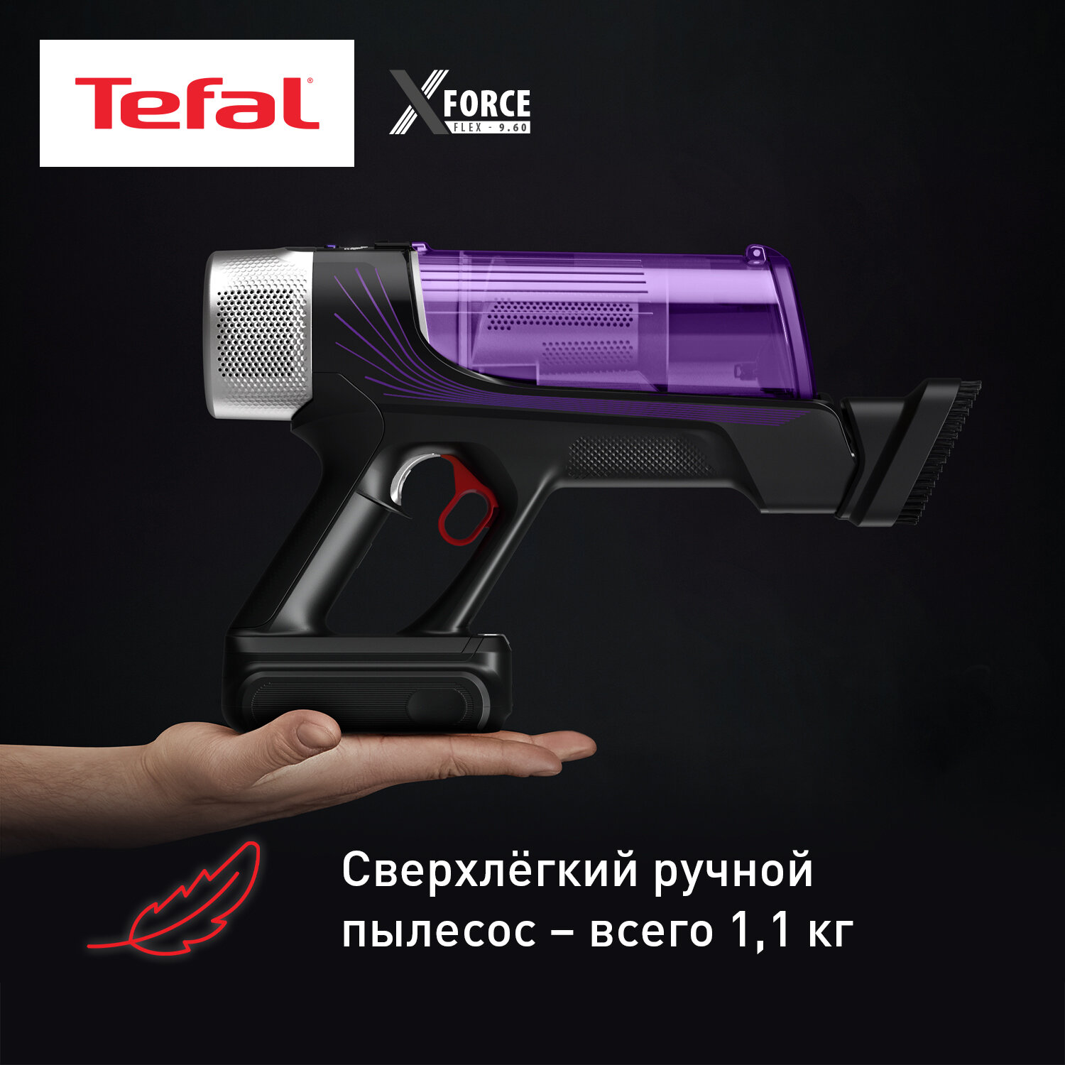 Беспроводной пылесос Tefal X-Force Flex 9.60 Allergy TY2039WO с автоматической регулировкой мощности и 5 насадками, фиолетовый 23 199 ₽