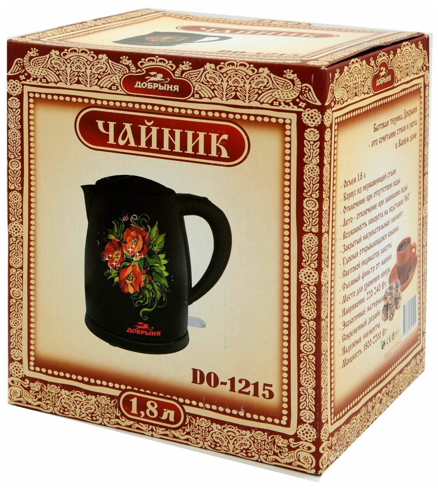 Добрыня Чайник электрический "Добрыня" DO-1215, металл, 2 л, 2200 Вт, черный с цветами 3 273 ₽
