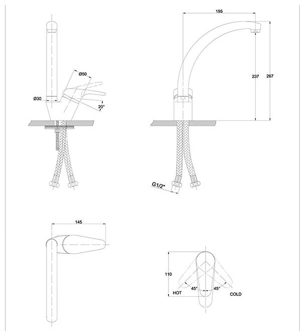 | Длина излива | 200 мм |