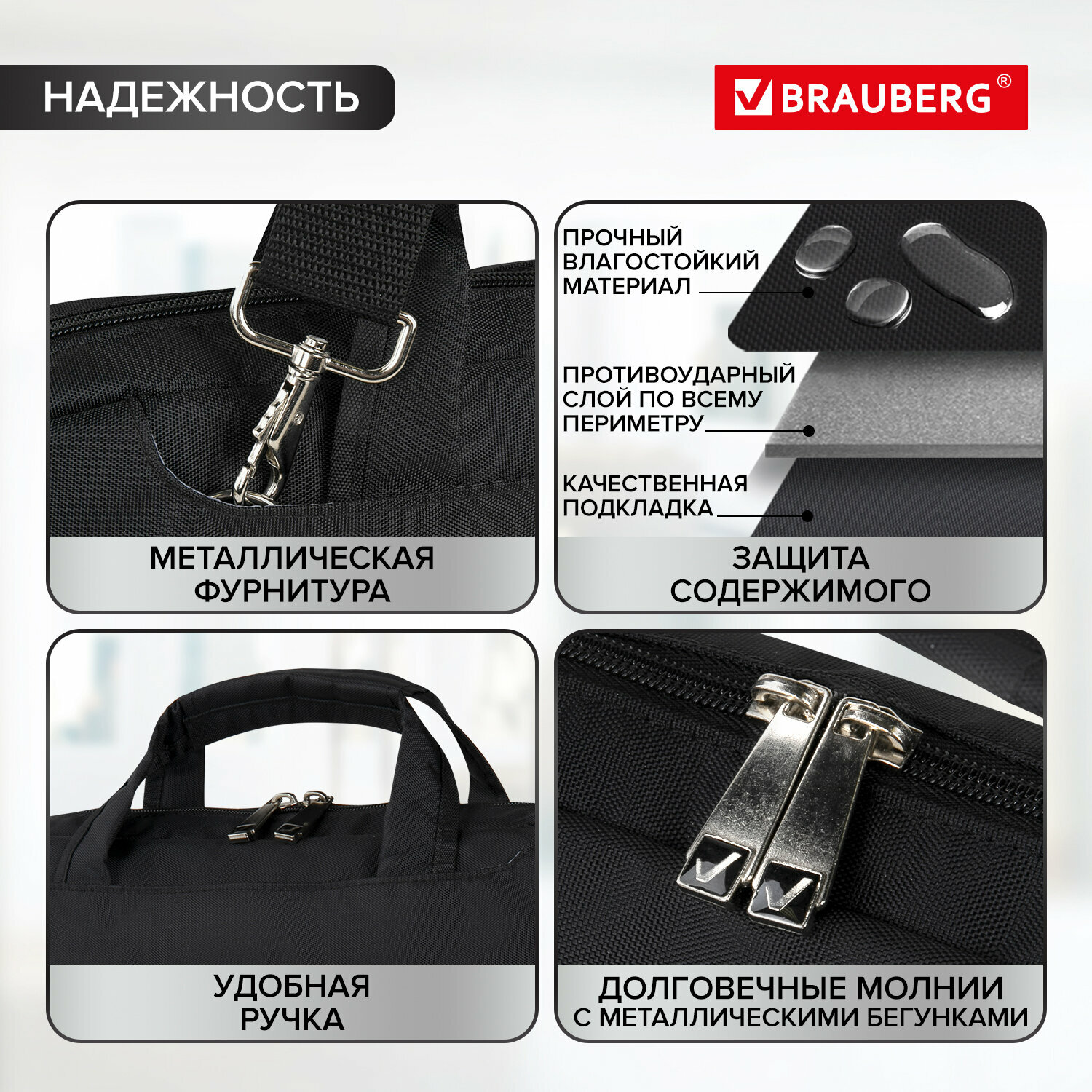 Сумка портфель BRAUBERG с отдел. для ноутбука 13-14", Chance, 3 кармана, черная, 36х28х5 см, 240455 информация: