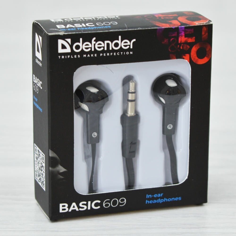 Наушники Defender Basic 609, проводные, 1,1 м, стерео, вкладыши, черные (63609)