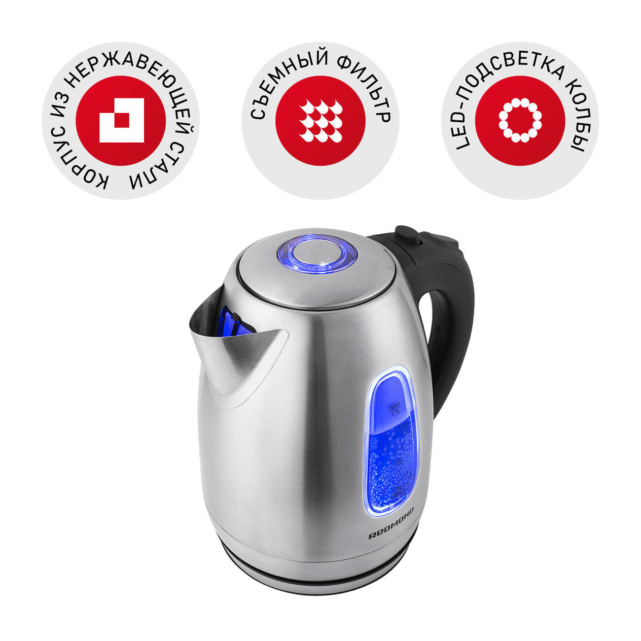 Чайник электрический Redmond RK-M183, 1,7л, 2200Вт, с подсветкой, нержавеющая сталь ( Артикул 287362 ) 3 637 ₽