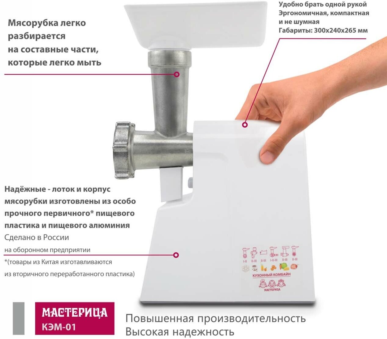 10 цен на Мясорубка мастерица КЭМ-01, белый