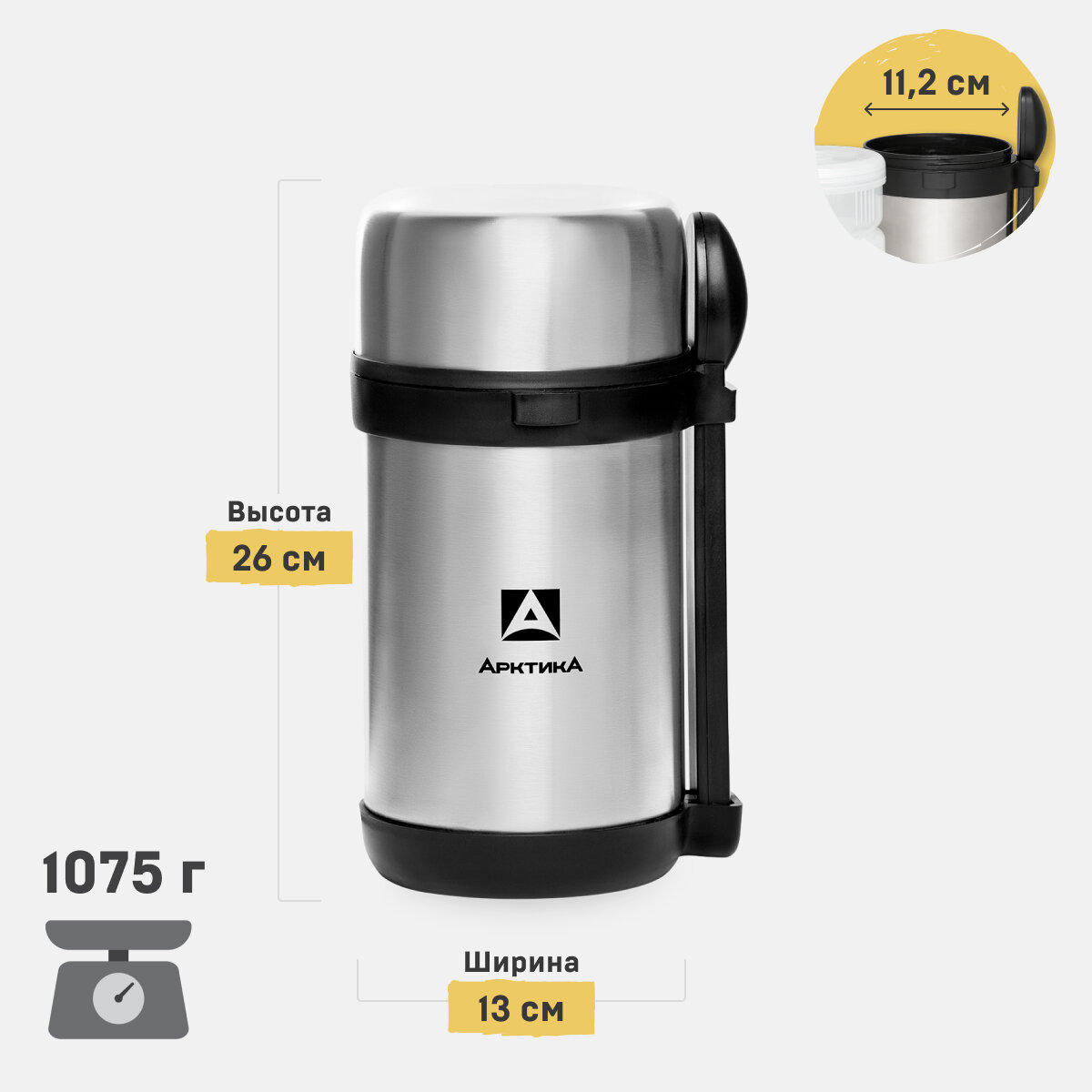 10 цен на Термос для еды, нерж, 1.5 л, шир.горл, Арктика, колба нерж, ремешок, 3 конт,вил,лож в фут, 403-1500