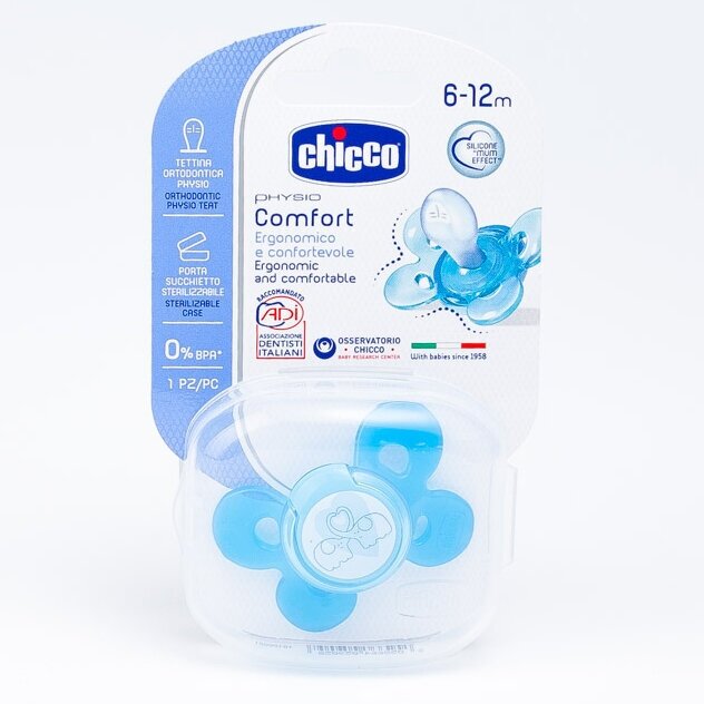Пустышка силиконовая ортодонтическая Chicco Physio Comfort 6-12 м, голубой
