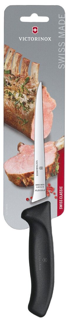 Нож обвалочный VICTORINOX SwissClassic, гибкое лезвие 15 см, чёрный, в картонном блистере, 6.8413.15B