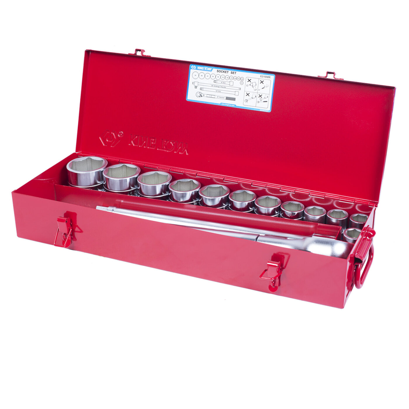 6316MR KING TONY Набор торцевых головок с принадлежностями 3/4", шестигранные, 21-50 мм, 16 предметов