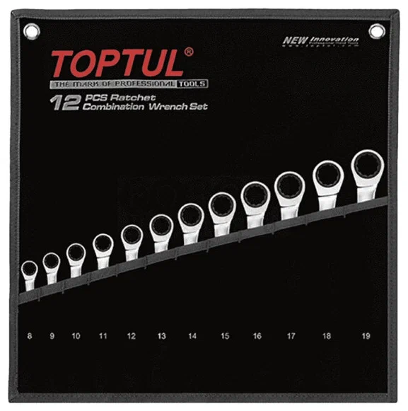 Набор ключей комбинир. 8-19мм 12шт с трещоткой (черное полотно) TOPTUL (GPAQ1202)
