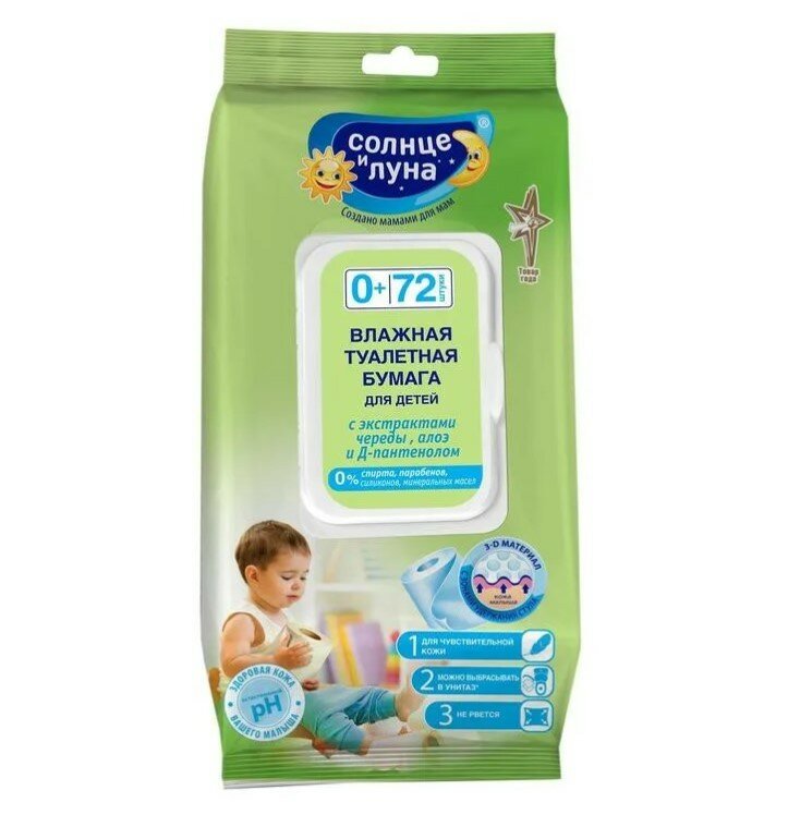 Солнце И луна Влажная туалетная бумага для детей с экстрактом череды 72шт информация: