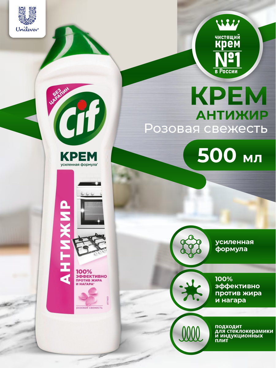 10 цен на CIF Универсальный чистящий крем Розовая свежесть 500 мл.