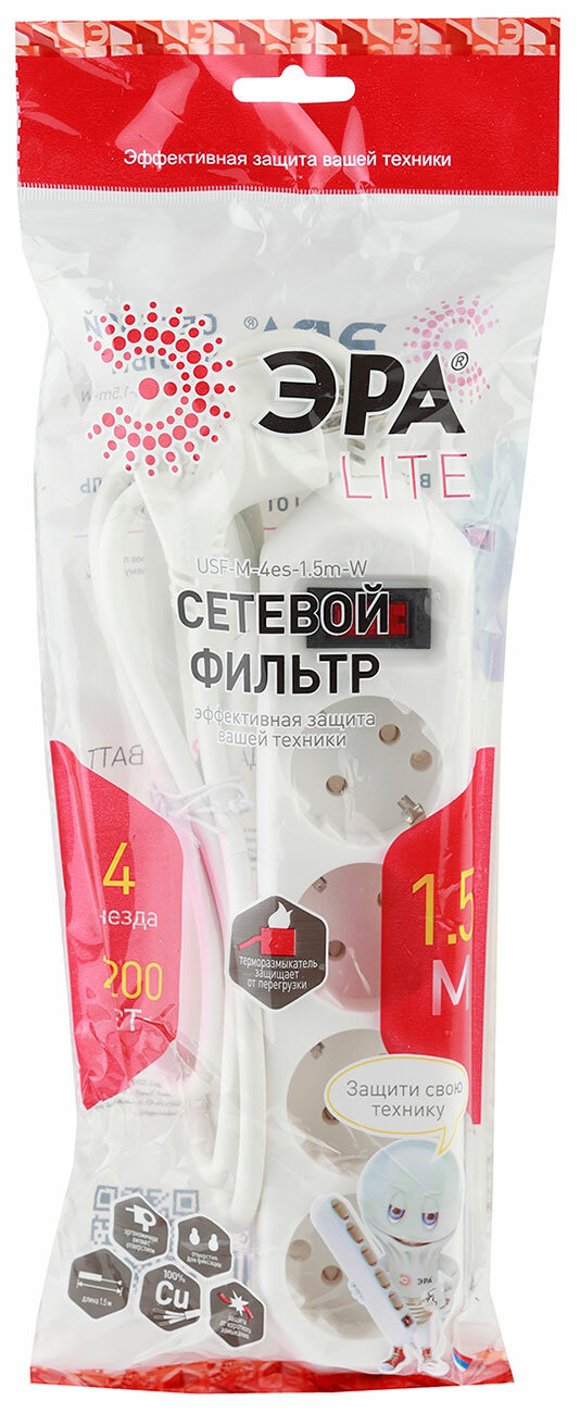 Отзывы на Сетевой фильтр ЭРА USF-M-4es-1.5m-W 4 гнезда с защитой с заземлениемением 1 5 м белый