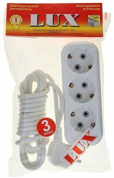 Отзывы на LUX Сетевой удл-ль LUX У3-е 3-местный с з/к, 250В 16А, 3м 4606400414643 .