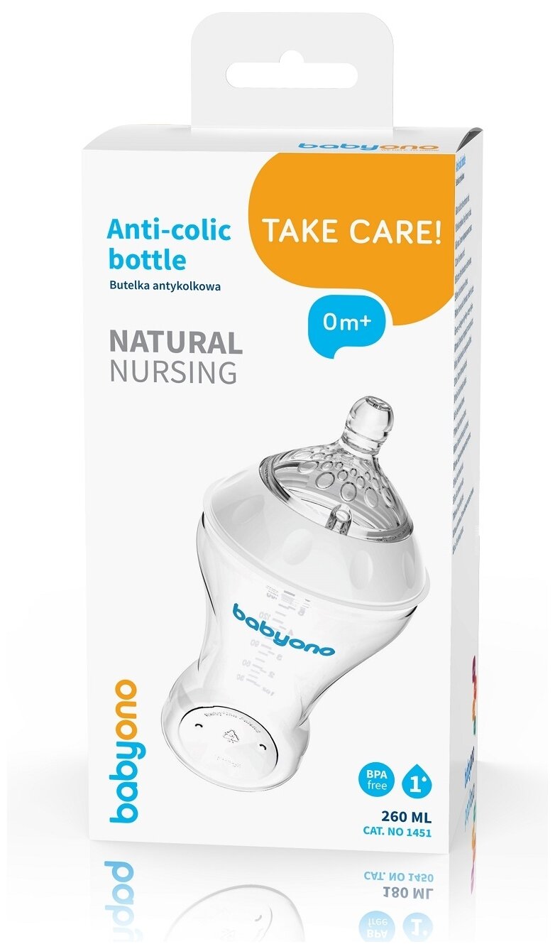 BabyOno Бутылочка Natural nursing антиколиковая 260 мл, с рождения, бесцветный