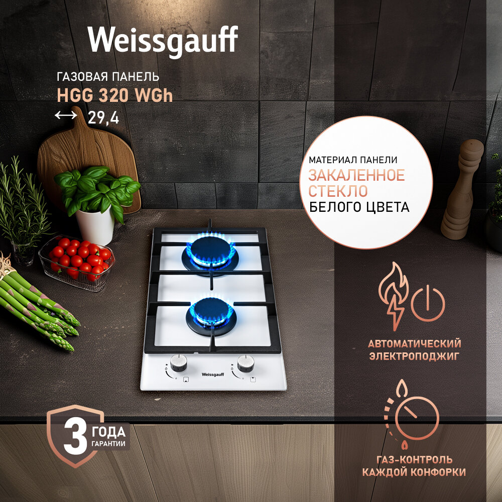 10 цен на Варочная панель Weissgauff HGG 320 WGH 3 года гарантии, автоматический электроподжиг, Рукоятки Hi-Tech, газ-контроль
