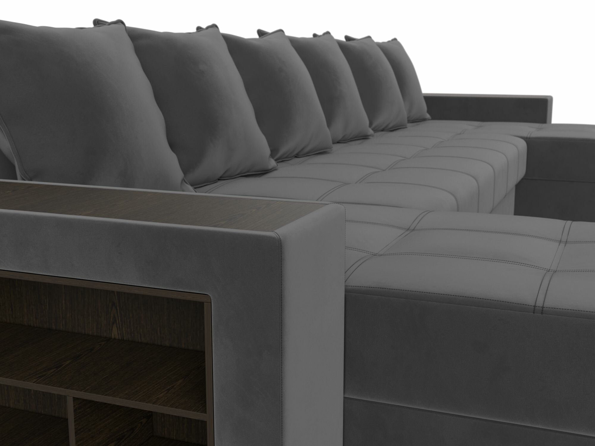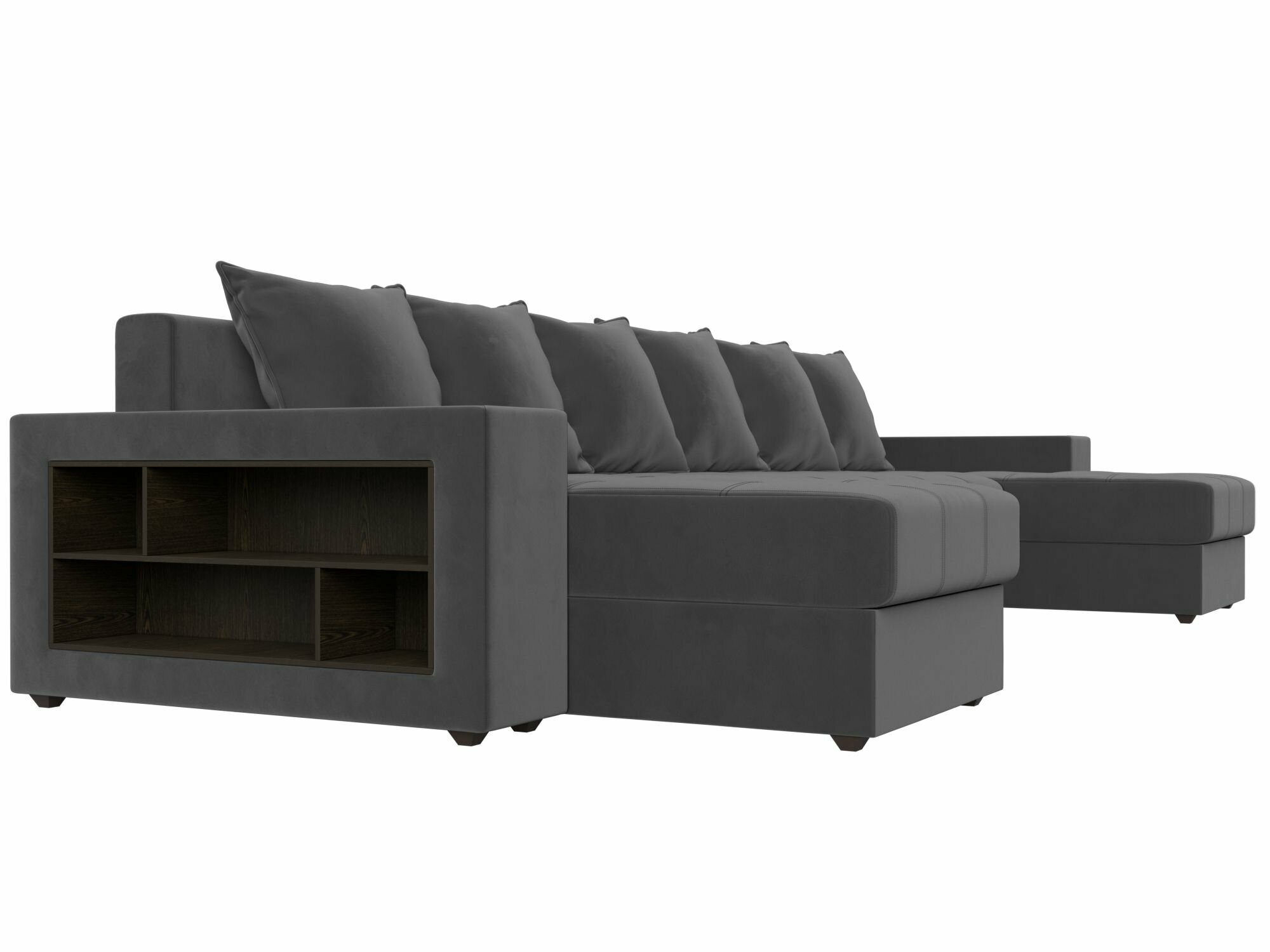 П-образный диван Дубай полки слева, Велюр серый информация: