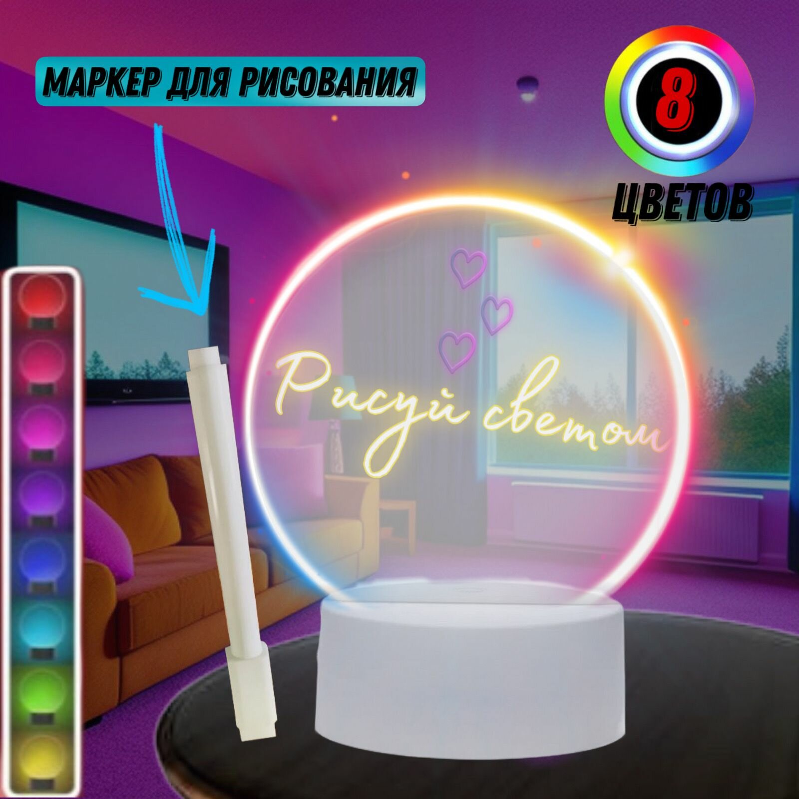 10 цен на Ночник RGB светильник с подсветкой 3D, стирай рисуй + маркер