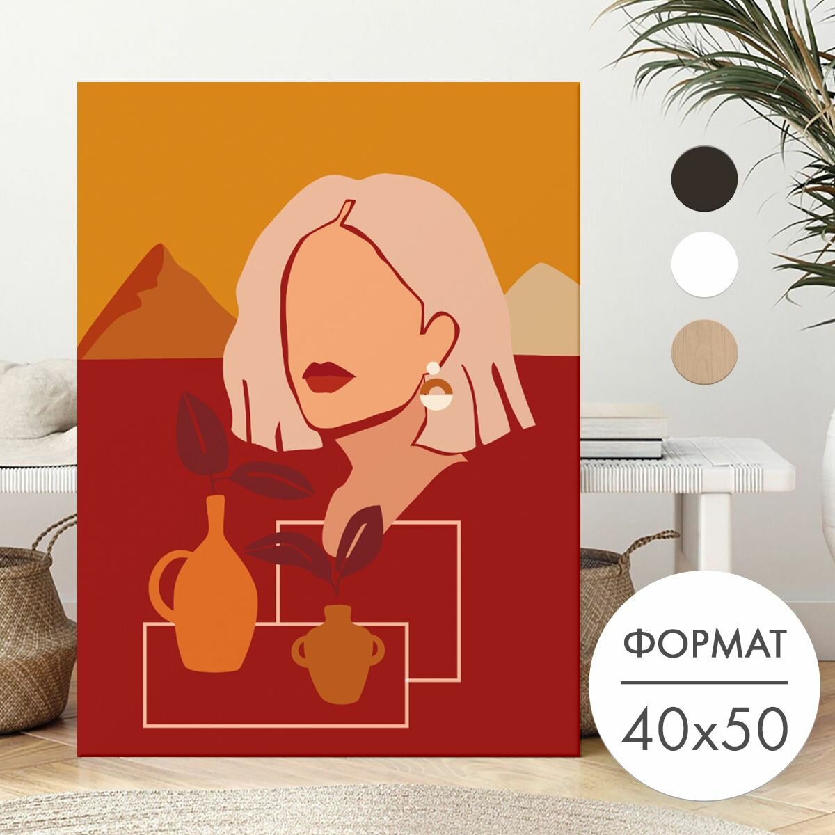 Отзывы на Постер 40х50 без рамки "Девушка и ваза в бохо стиле" для интерьера