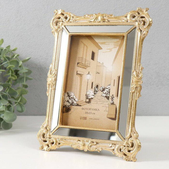 Фоторамка полистоун 10х15 см "Вереск" золото с зеркалом 17,1х2х22,3 см информация:
