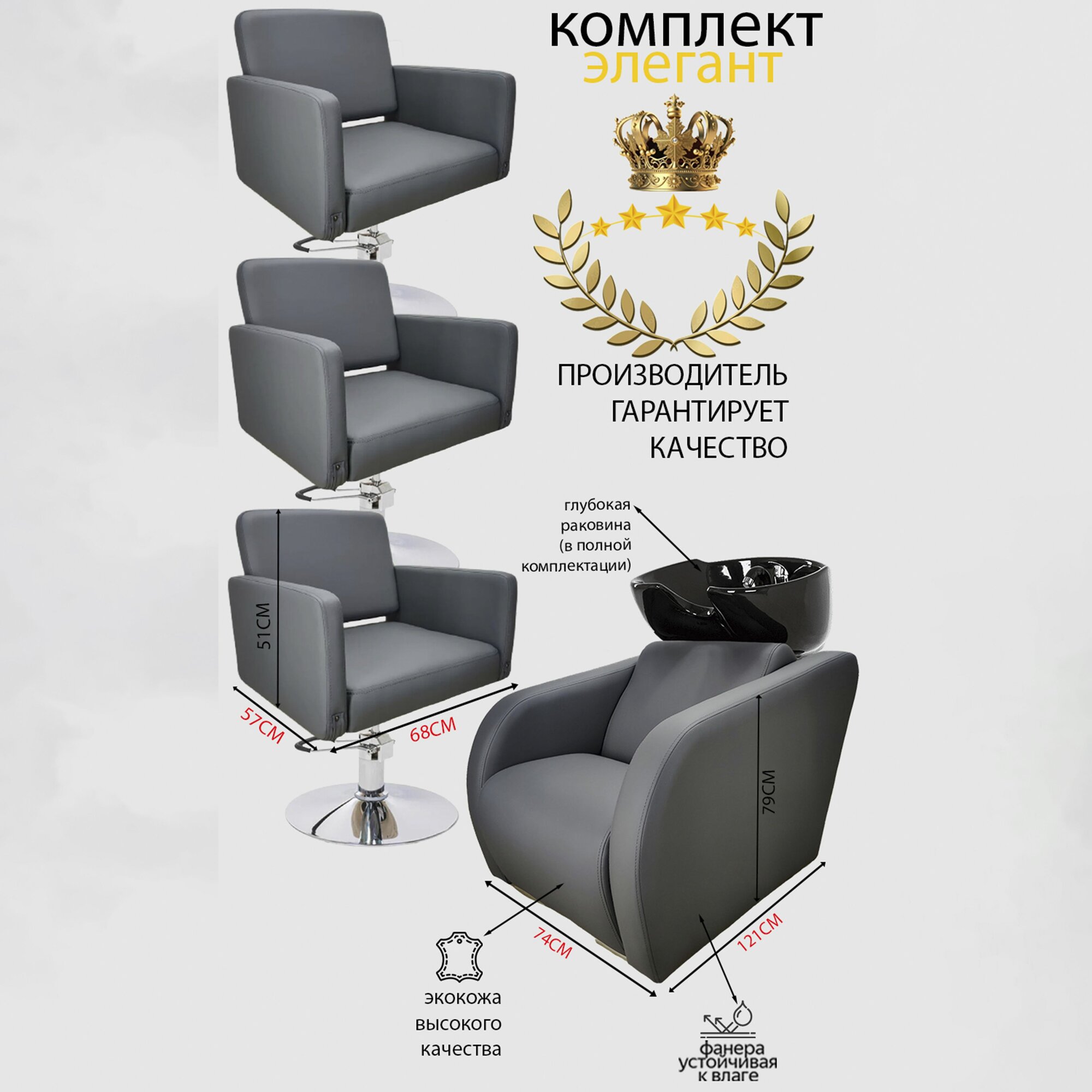 10 цен на Парикмахерский комплект "Элегант", Серый, 3 кресла гидравлика диск, 1 мойка глубокая черная раковина