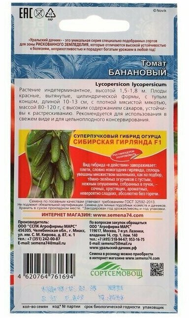 Семена Томат "Банановый" среднеранний сорт для пленочных теплиц и открытого грунта 20 шт. информация: