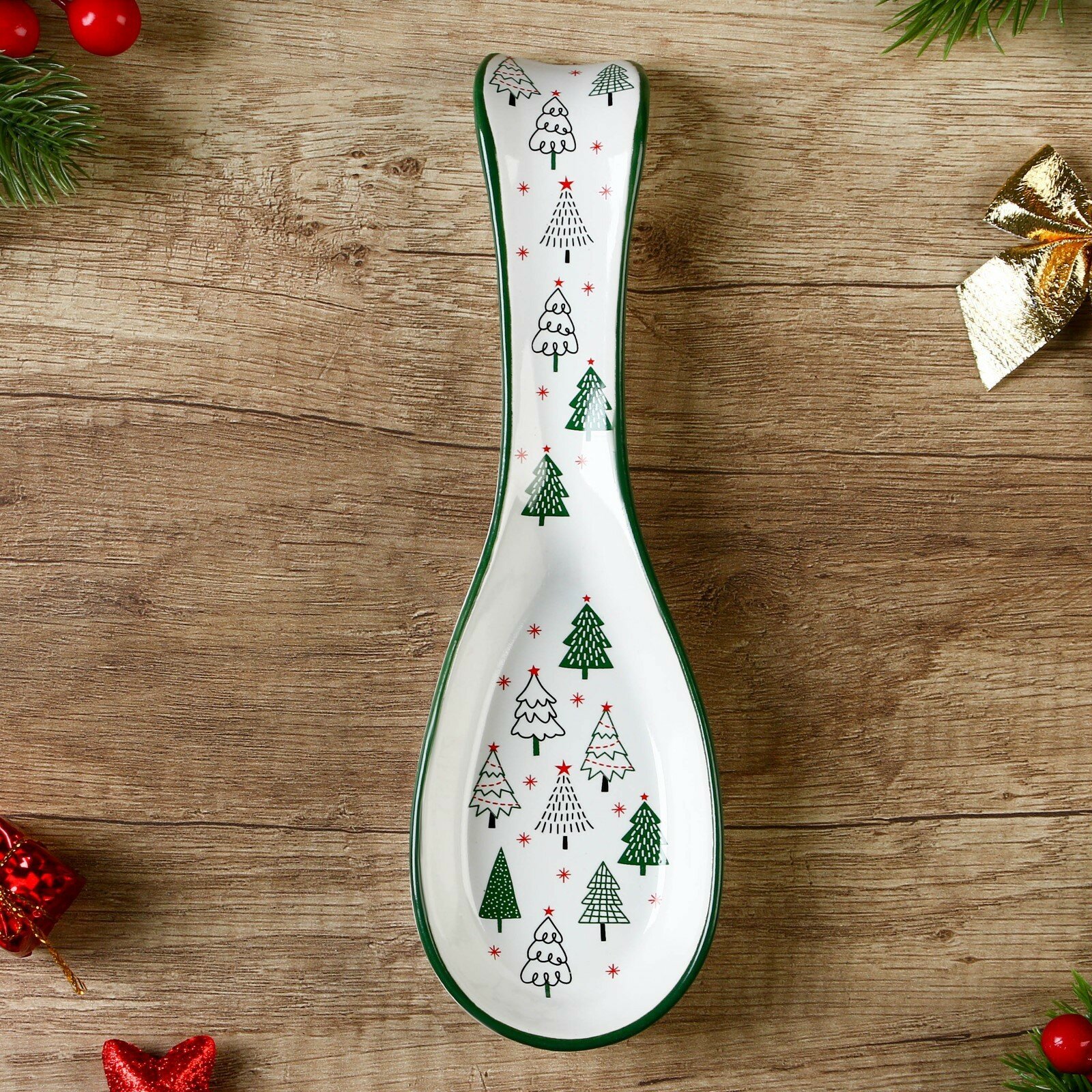 10 цен на Подставка керамическая под ложку «Зимний лес», 7 х 22.3 см, цвет белый