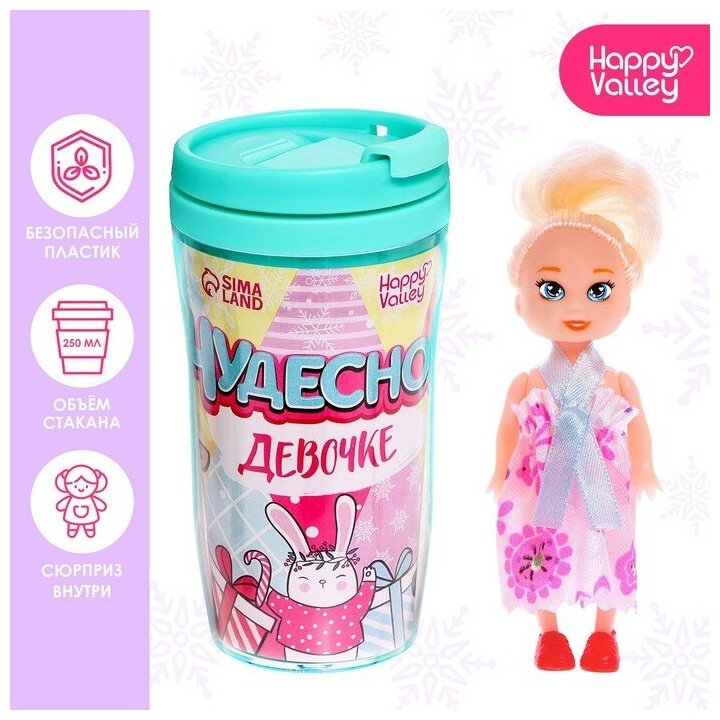 Термостакан с игрушкой «Чудесной девочке», бирюзовый информация: