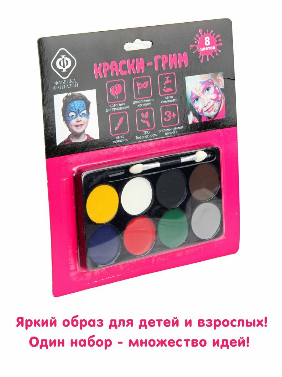 10 цен на Грим театральный для лица и тела, палитра 8 цветов, Фабрика Фантазий / Аквагрим для детей, набор краски для грима с кистью-аппликатором / Halloween, хэлоуин