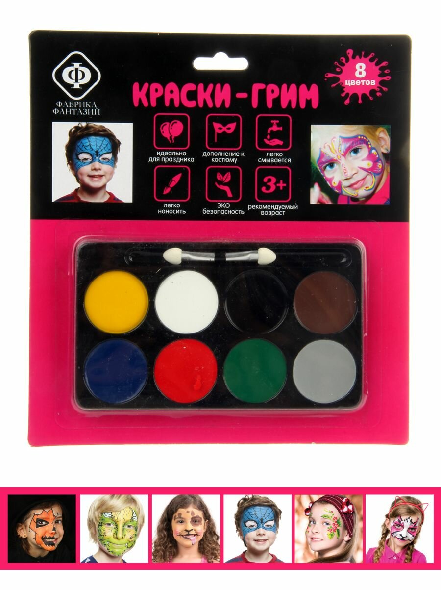 Отзывы на Грим театральный для лица и тела, палитра 8 цветов, Фабрика Фантазий / Аквагрим для детей, набор краски для грима с кистью-аппликатором / Halloween, хэлоуин