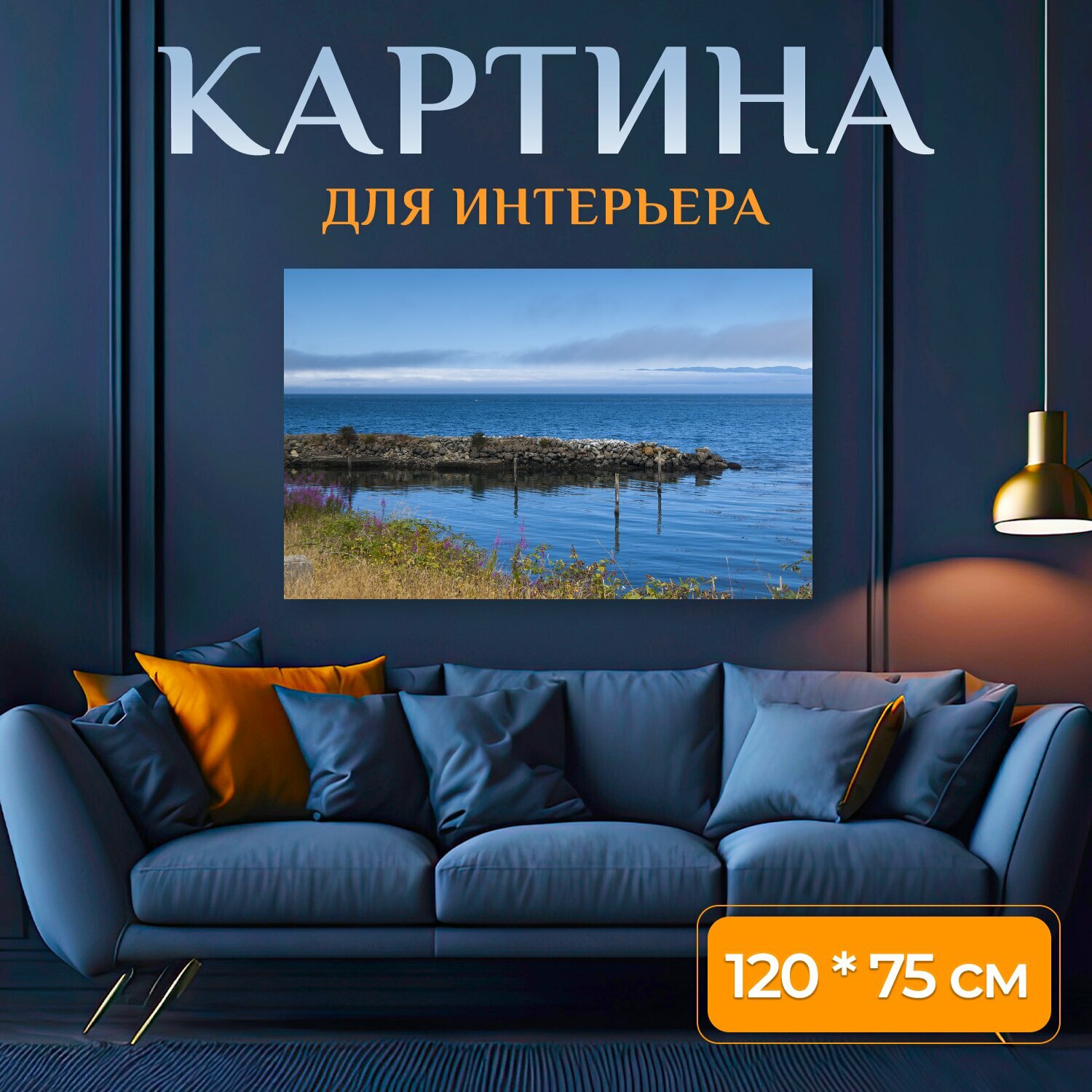 10 цен на Картина на холсте "Озеро, воды, пейзаж" на подрамнике 120х75 см. для интерьера