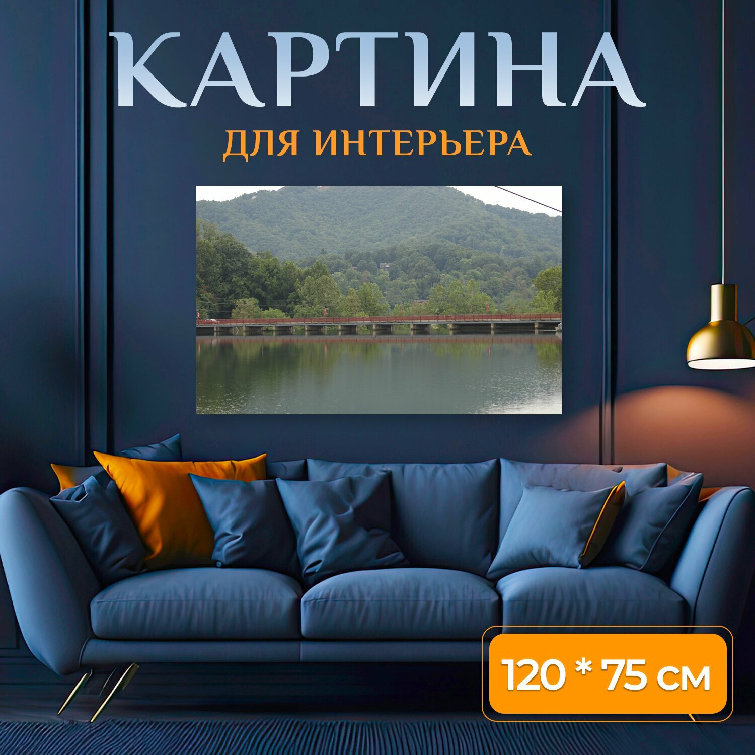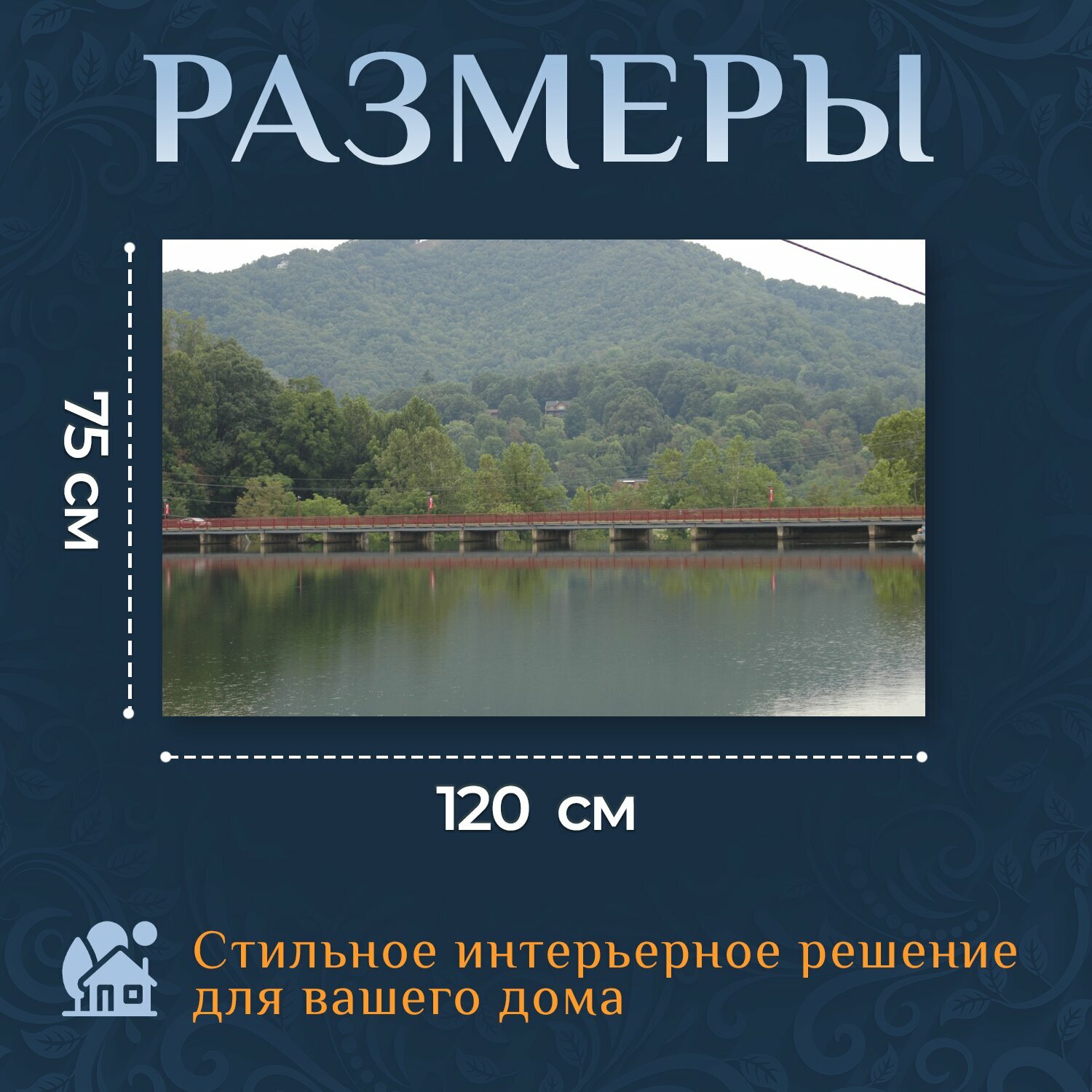 Картина на холсте "Озеро, мост, вода" на подрамнике 120х75 см. для интерьера информация: