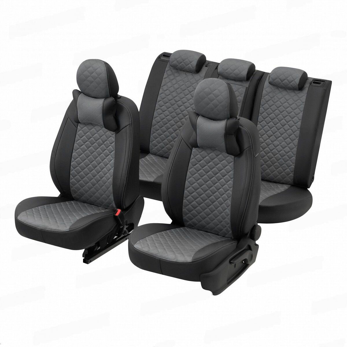10 цен на Подушки под шею (суппорт подголовника) для БМВ 2 серии Актив Турер (2014 - 2018) компактвэн / BMW 2-series Active Tourer, Ромб, Алькантара, 2 подушки, Черный и серый