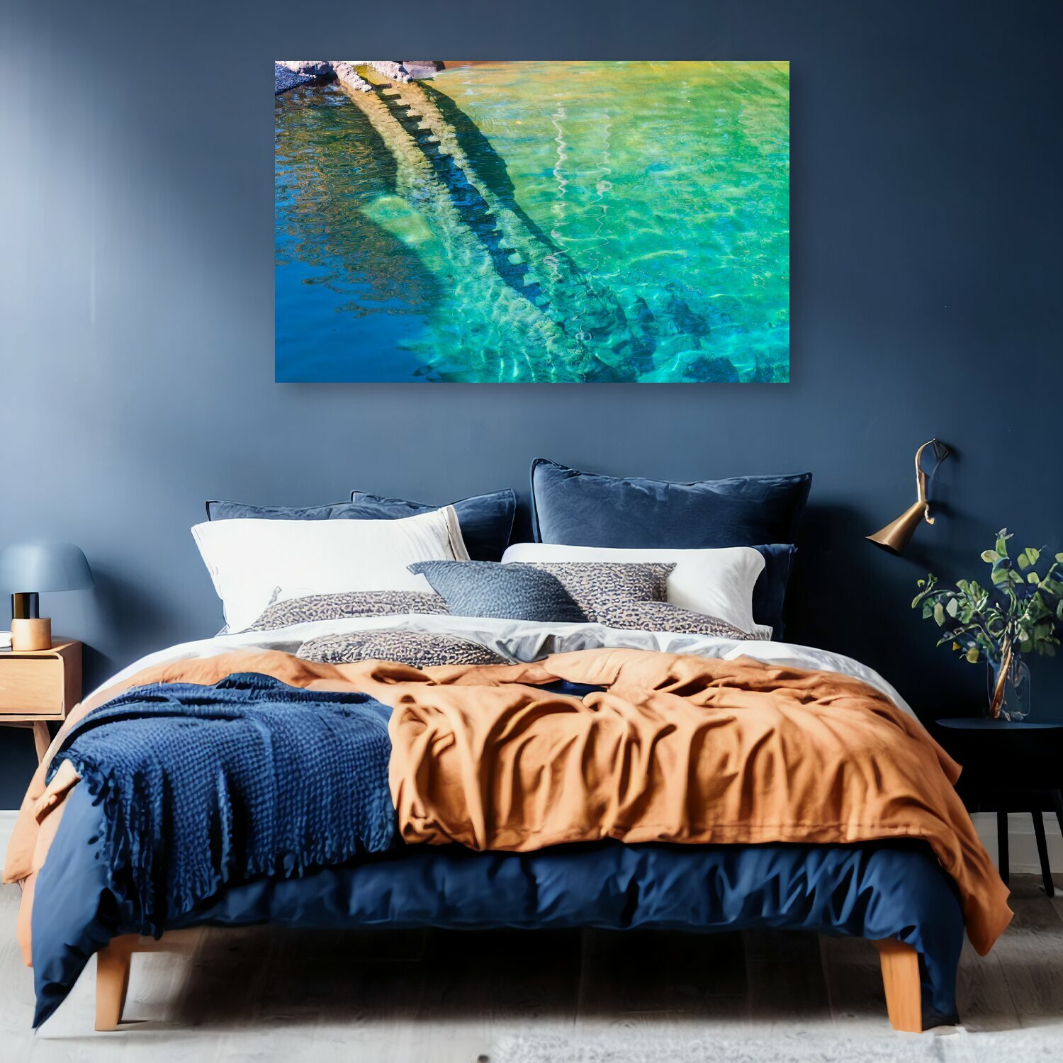 10 цен на Картина на холсте "Луч, рыбы, вода" на подрамнике 120х75 см. для интерьера