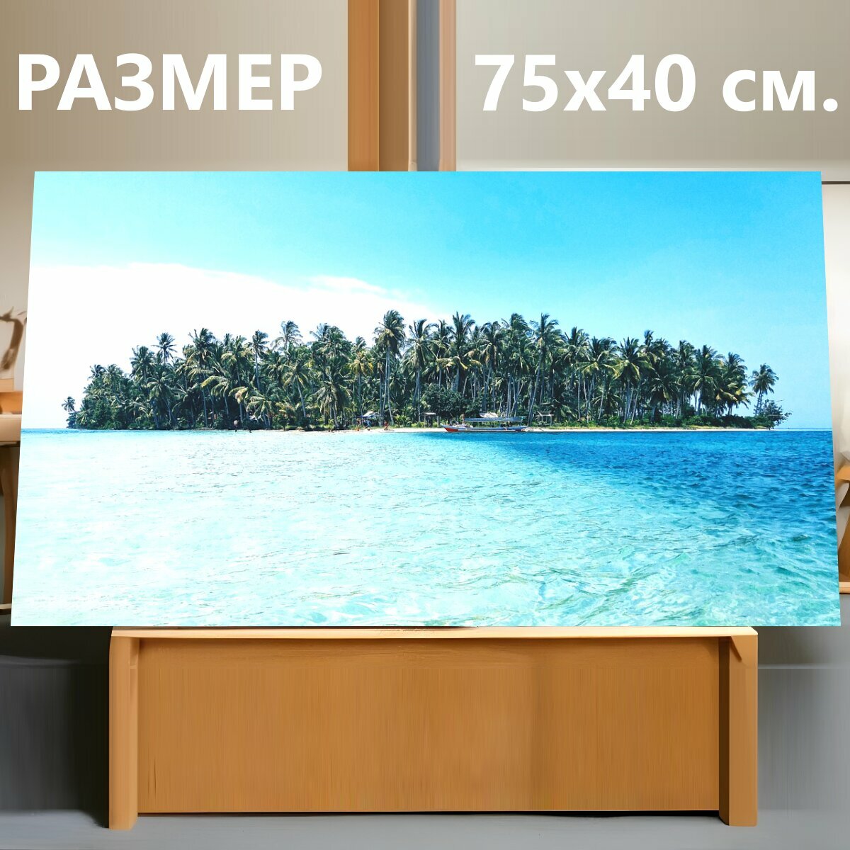 Картина на холсте "Остров, пальмы, тропический" на подрамнике 75х40 см. для интерьера информация: