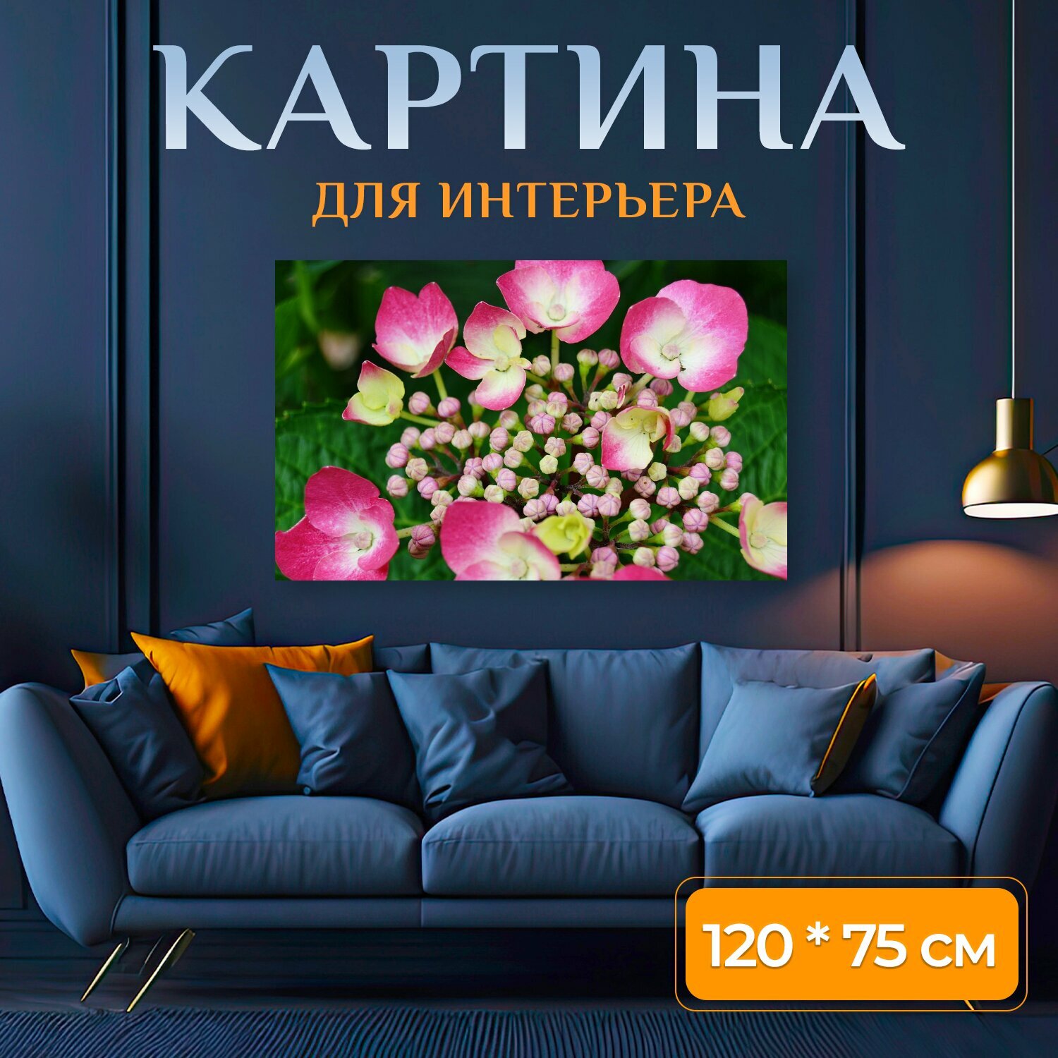 Картина на холсте "Гортензия, цветок, бутон" на подрамнике 120х75 см. для интерьера информация: