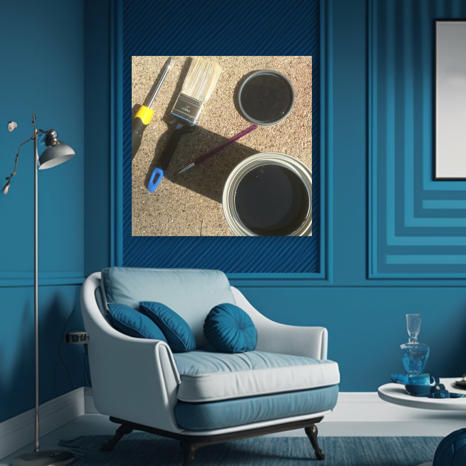 10 цен на Картина на холсте "Краска, щетка, инструменты" на подрамнике 75х75 см. для интерьера
