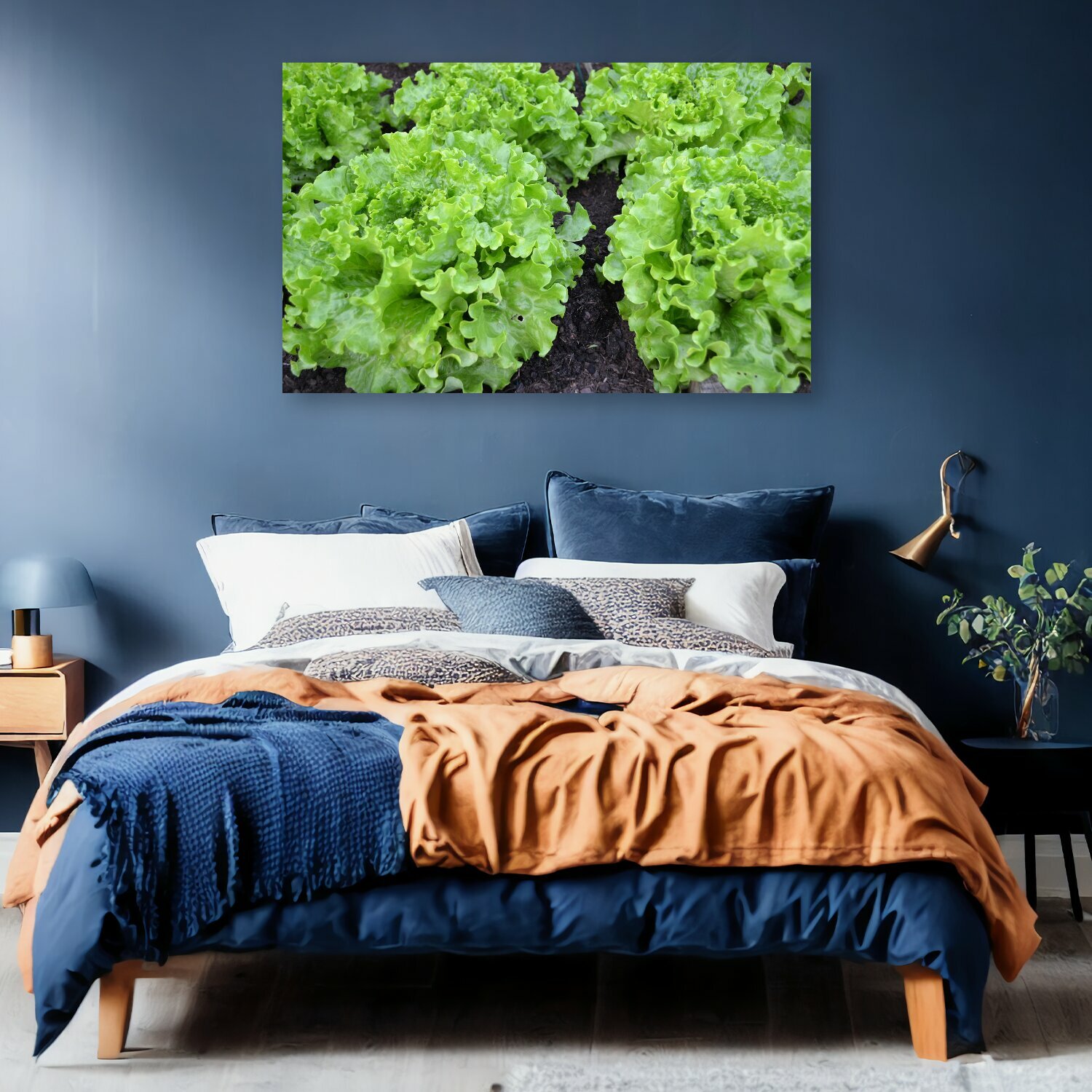 10 цен на Картина на холсте "Зеленый салат, латук, батавия" на подрамнике 120х75 см. для интерьера