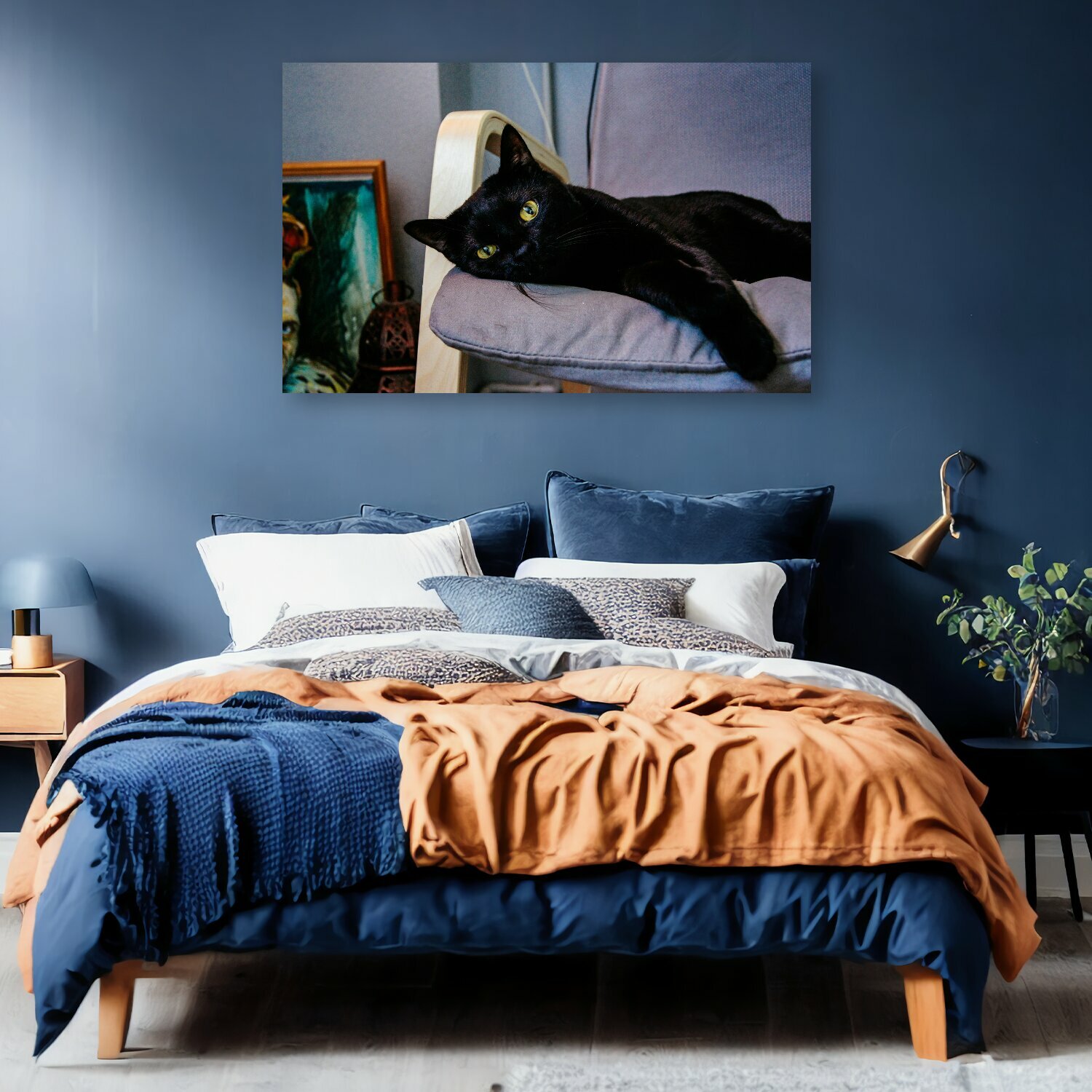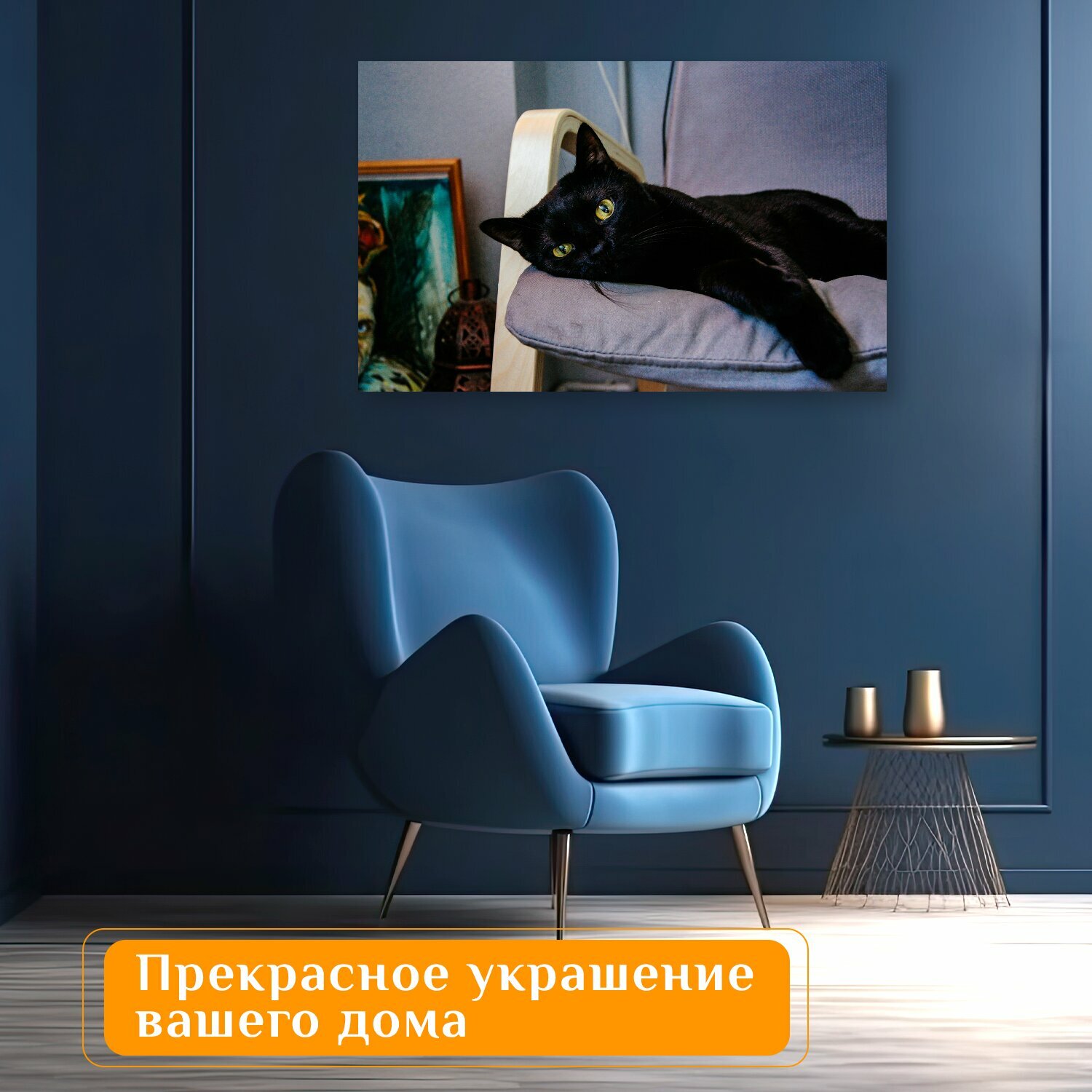 10 цен на Картина на холсте "Черный кот, животные, кошки" на подрамнике 120х75 см. для интерьера