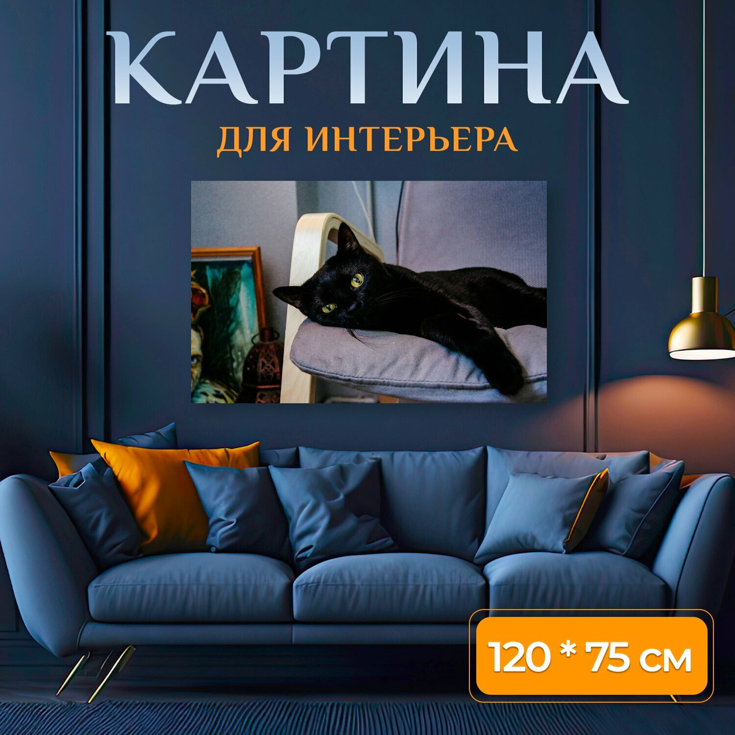 Картина на холсте "Черный кот, животные, кошки" на подрамнике 120х75 см. для интерьера информация: