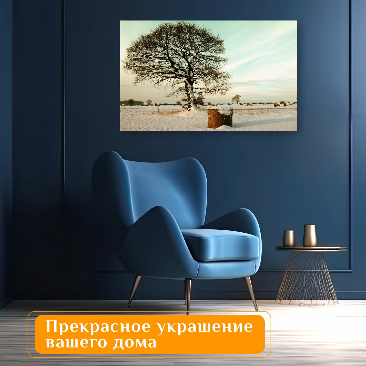 10 цен на Картина на холсте "Зима, пейзаж, снег" на подрамнике 120х75 см. для интерьера