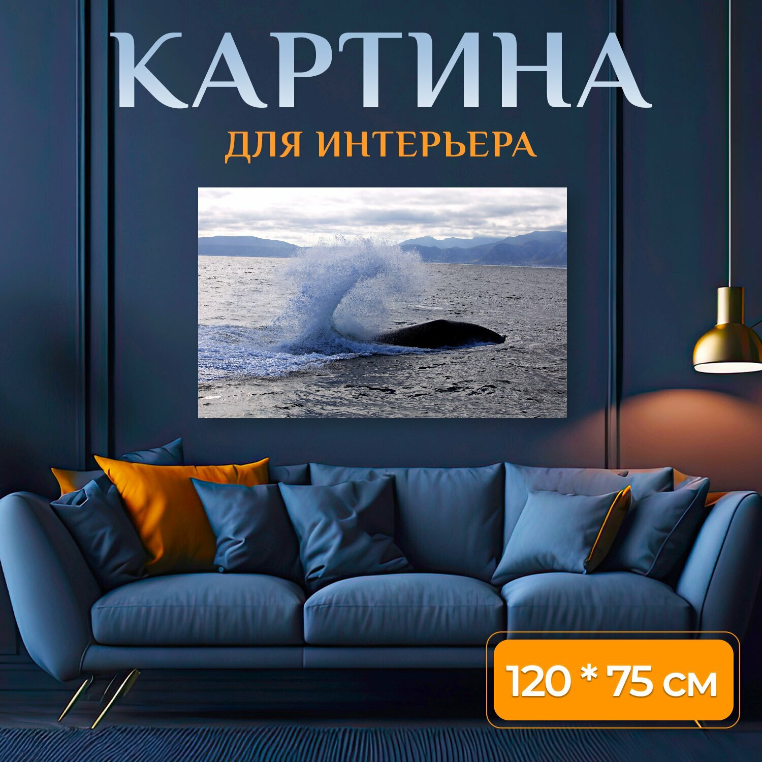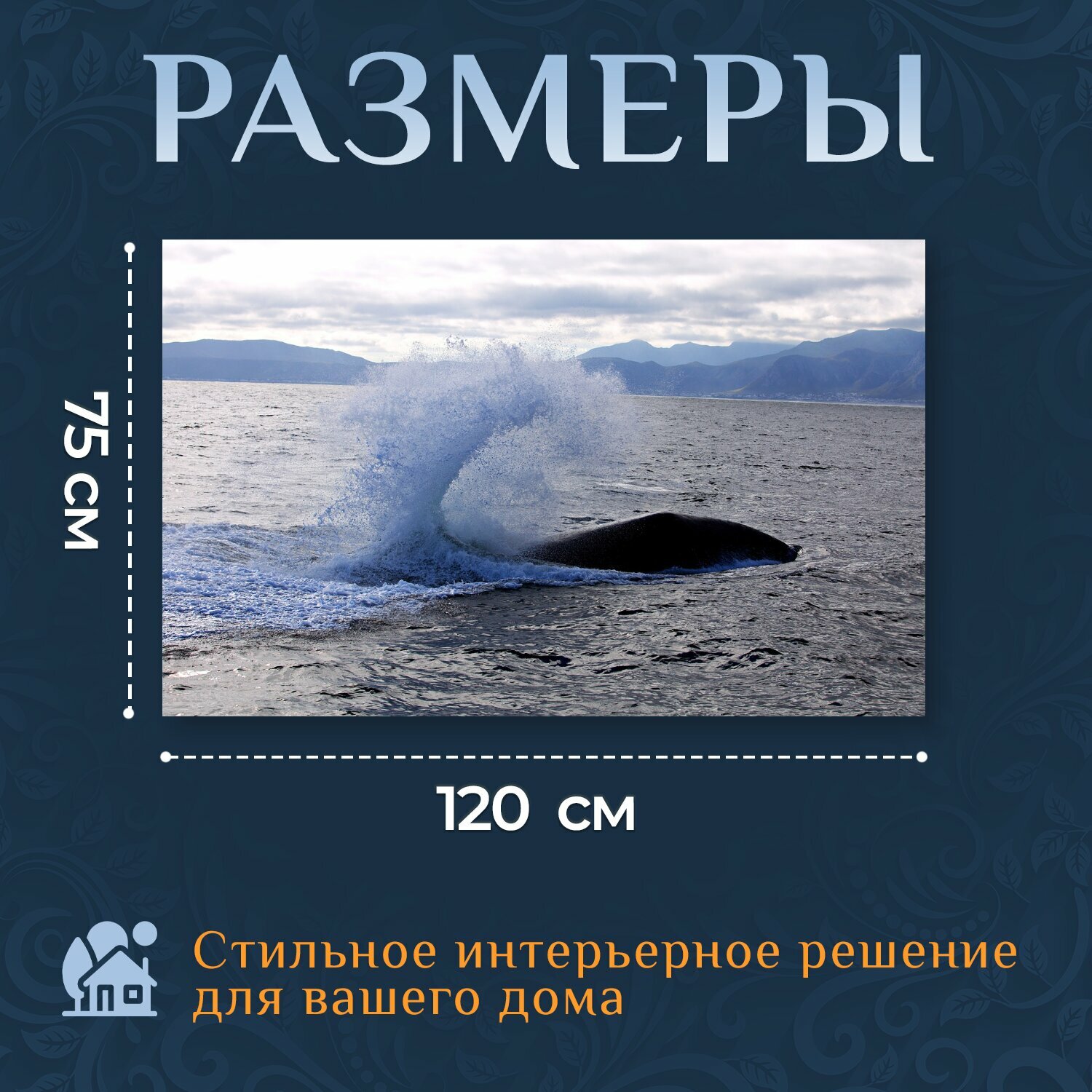 Картина на холсте "Кит, море, океан" на подрамнике 120х75 см. для интерьера информация: