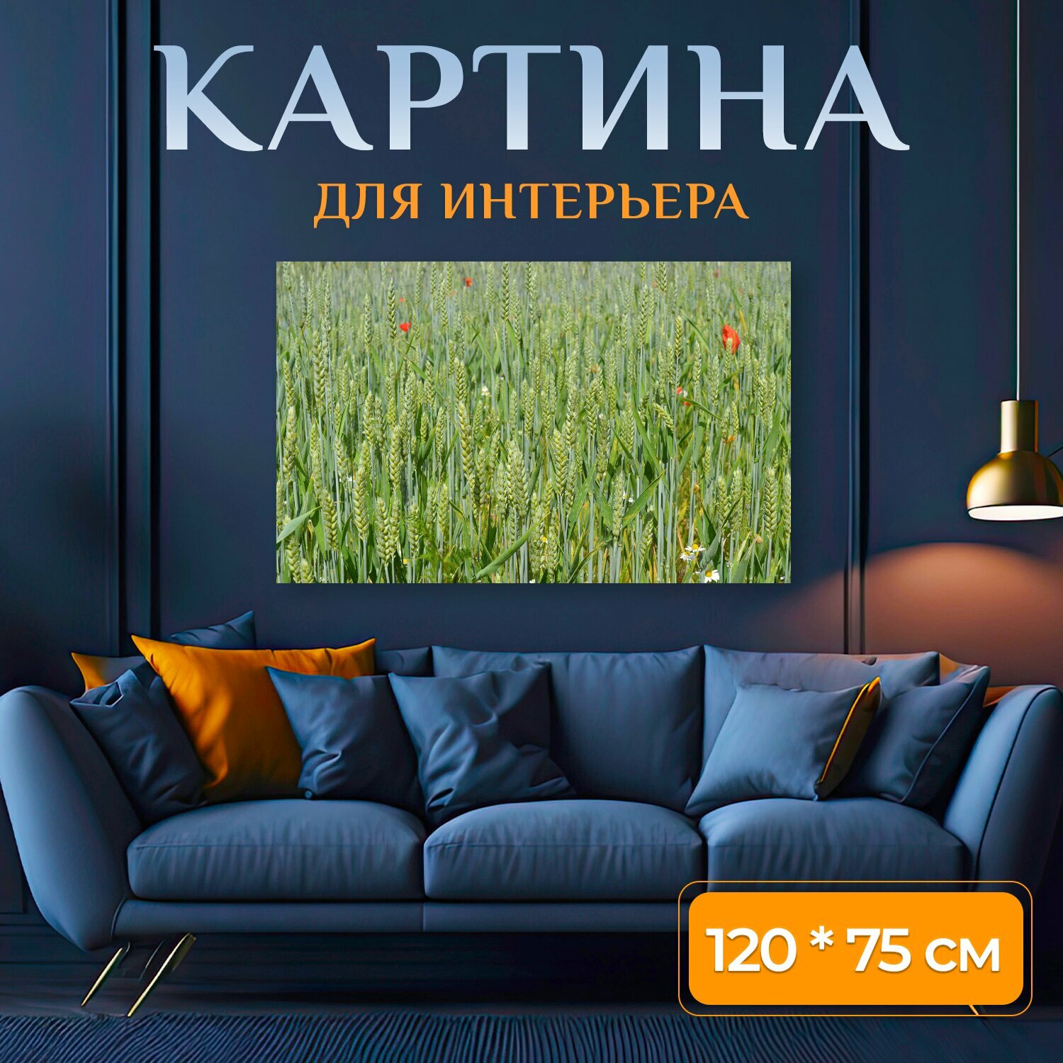 Картина на холсте "Пшеница, зерно, поле" на подрамнике 120х75 см. для интерьера информация: