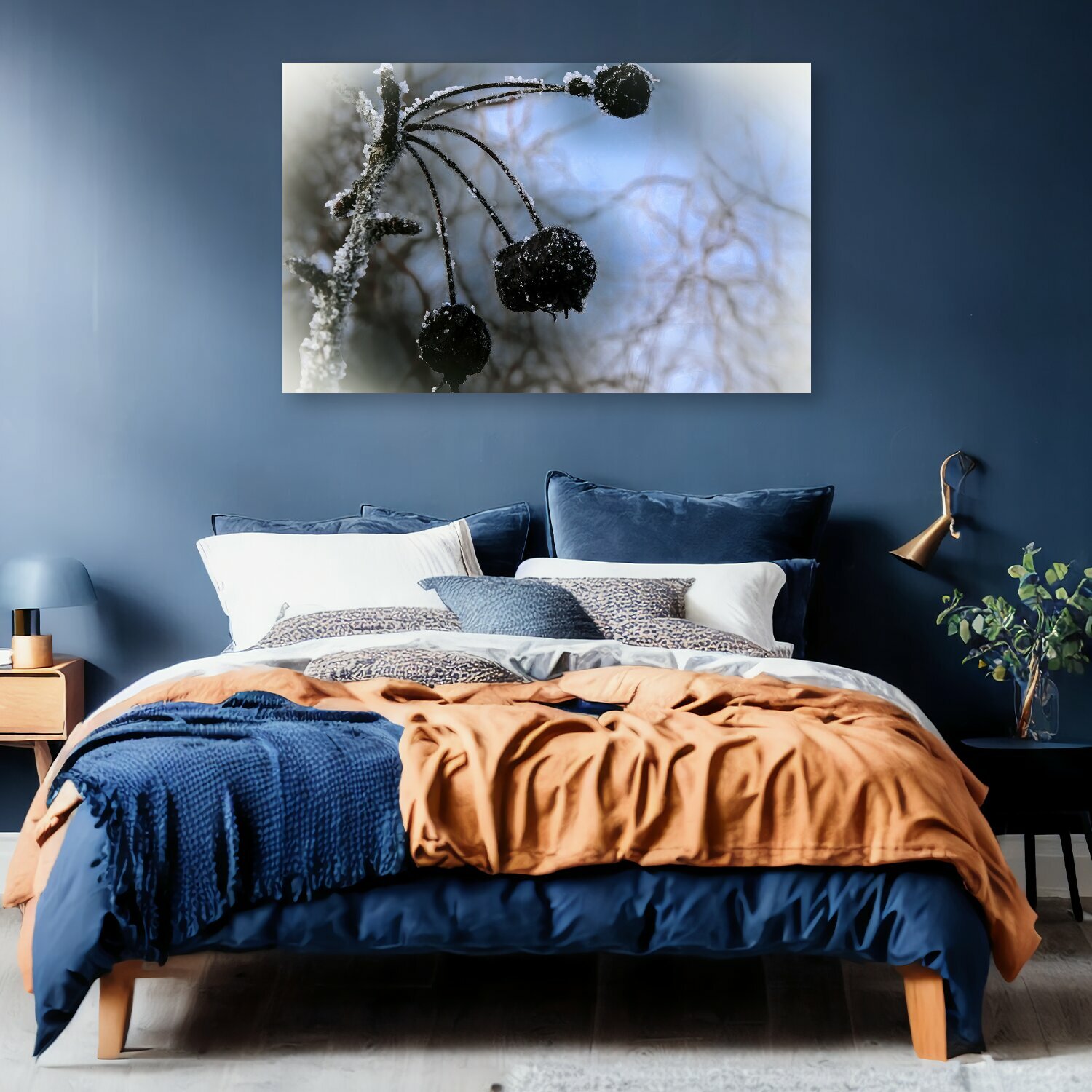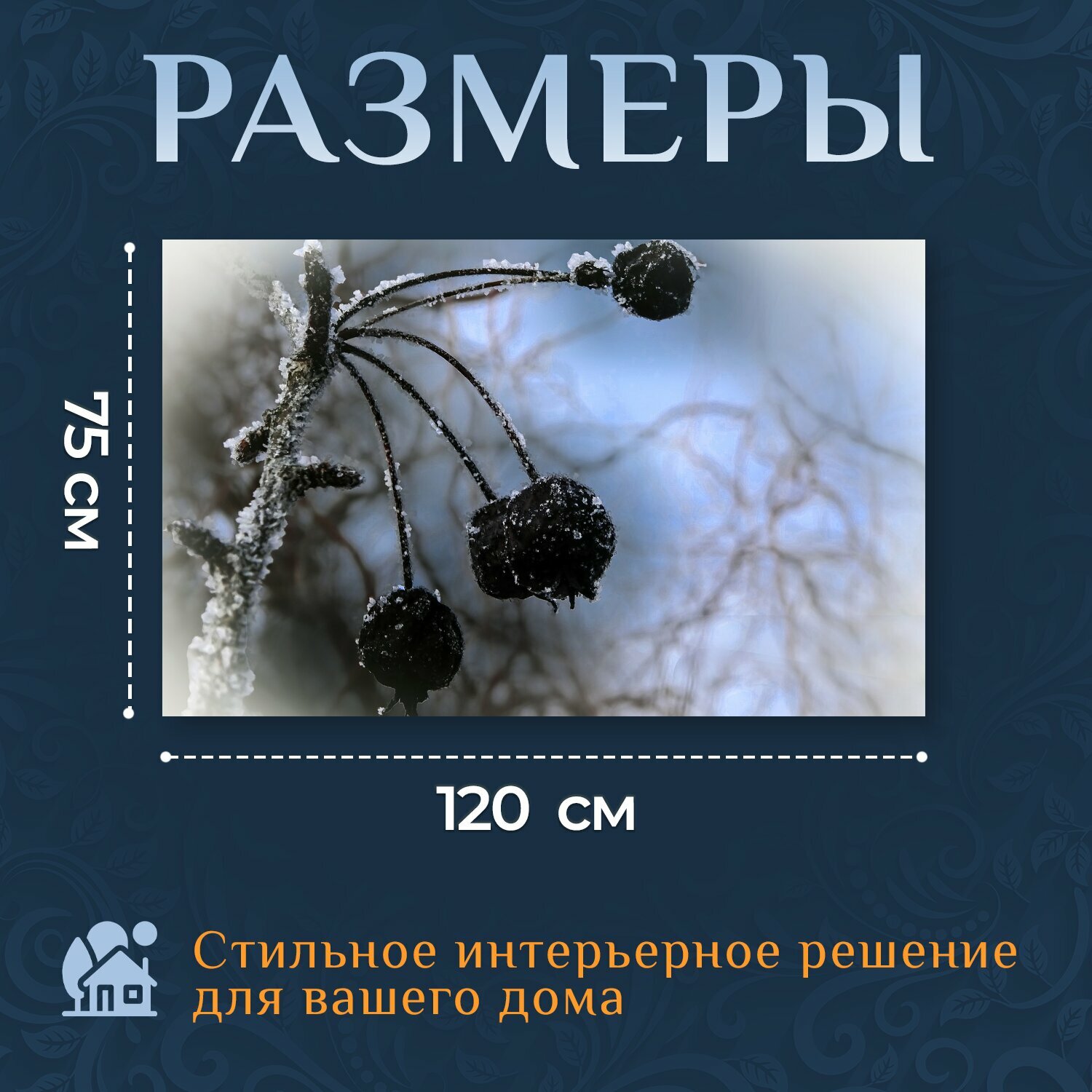 10 цен на Картина на холсте "Промокашки, веточка, фрукты" на подрамнике 120х75 см. для интерьера