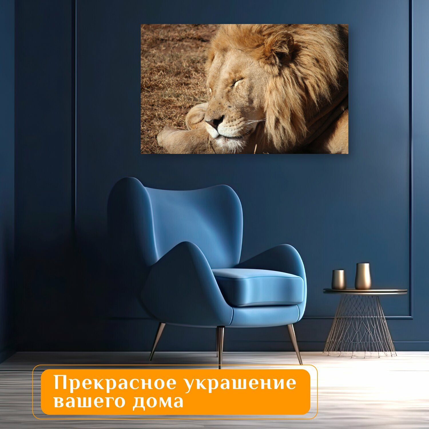 Картина на холсте "Лев, спать, дикая природа" на подрамнике 120х75 см. для интерьера информация: