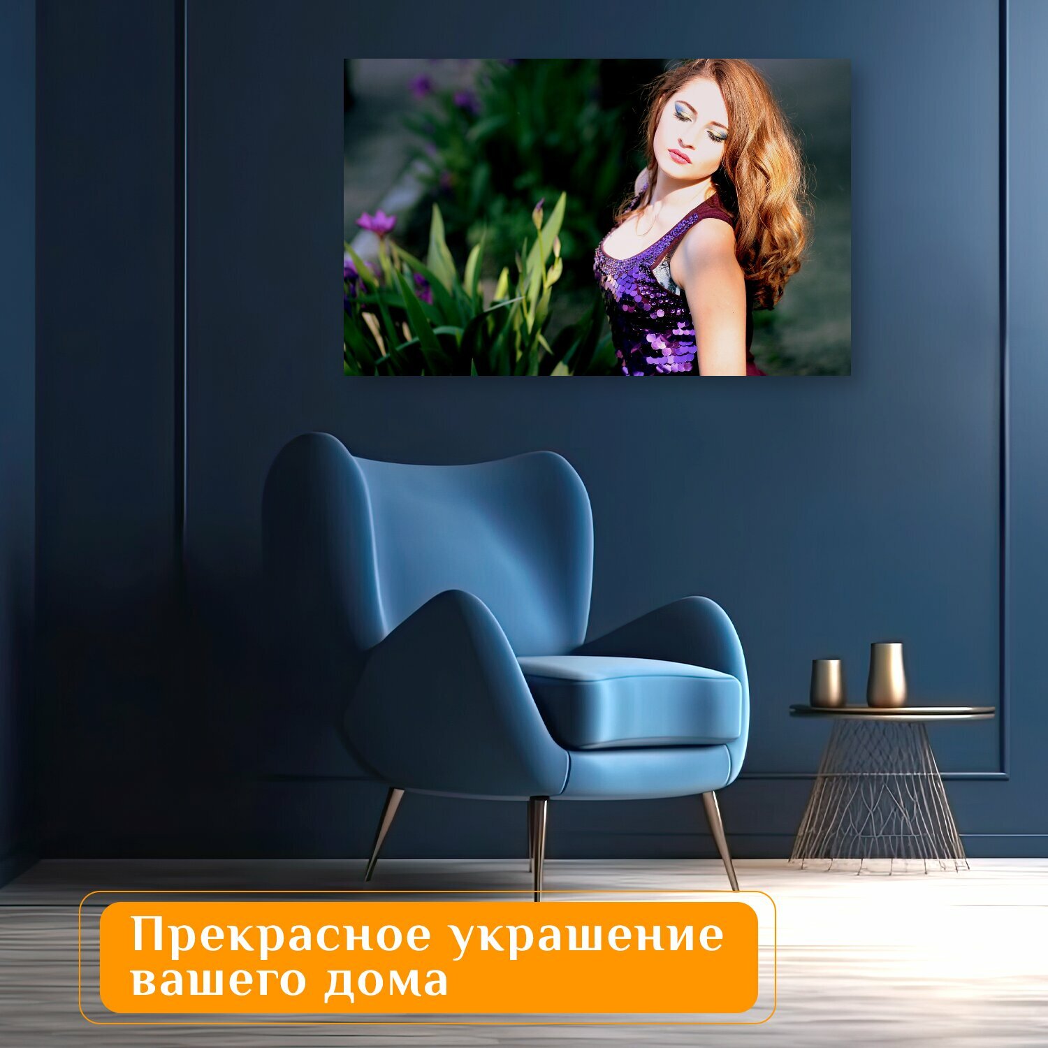 10 цен на Картина на холсте "Лицо, флора, фиолетовый" на подрамнике 120х75 см. для интерьера